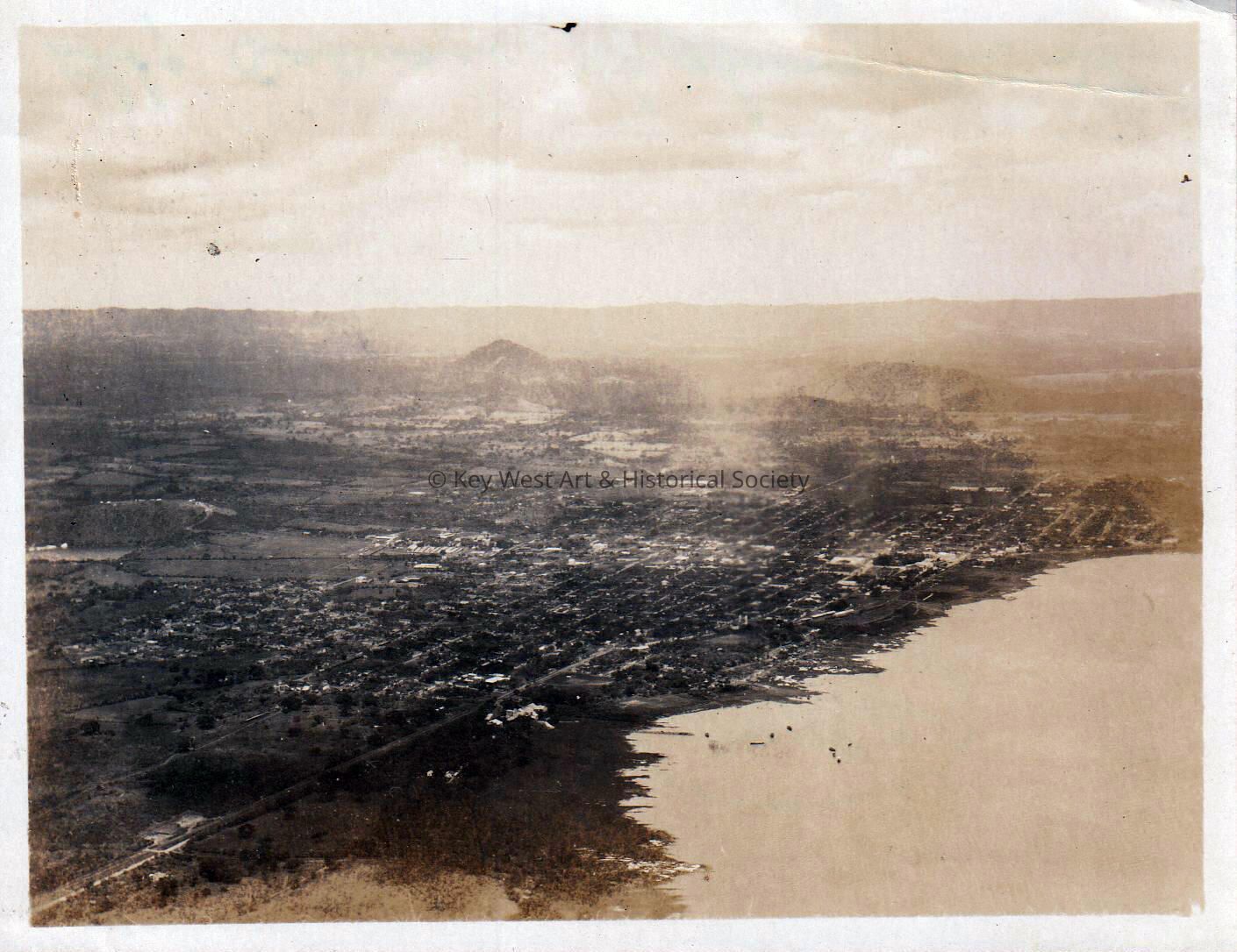 Black and white aerial photograph taken during the construction of the Overseas Highway.