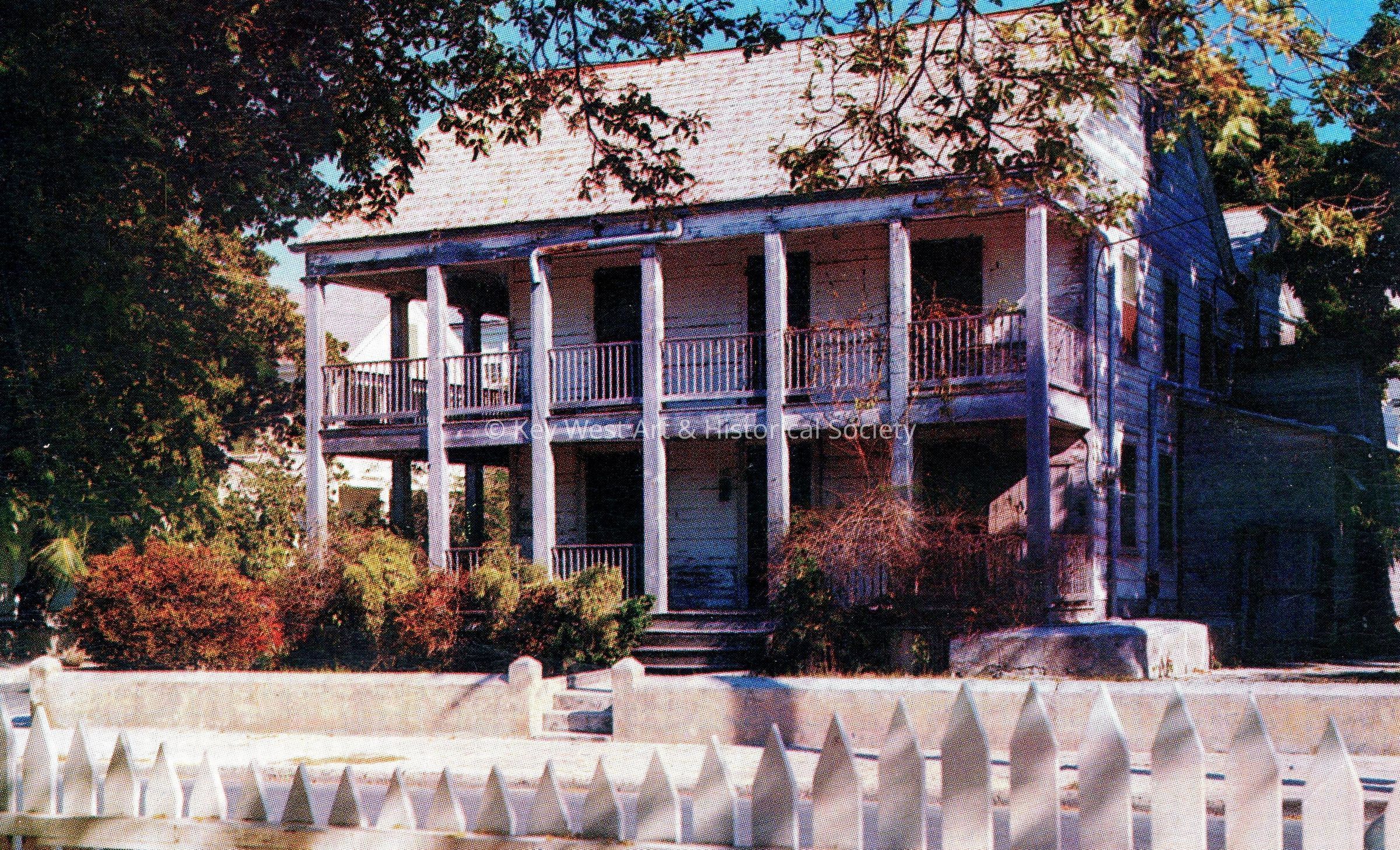 Postcard depicting a two-story home.  The description on the verso reads, 'One of the interesting Bahama Houses in Key West, Florida.  Originally located on Green Turtle Key, Bahama Islands, these houses were moved by boat to Key West.'Collection