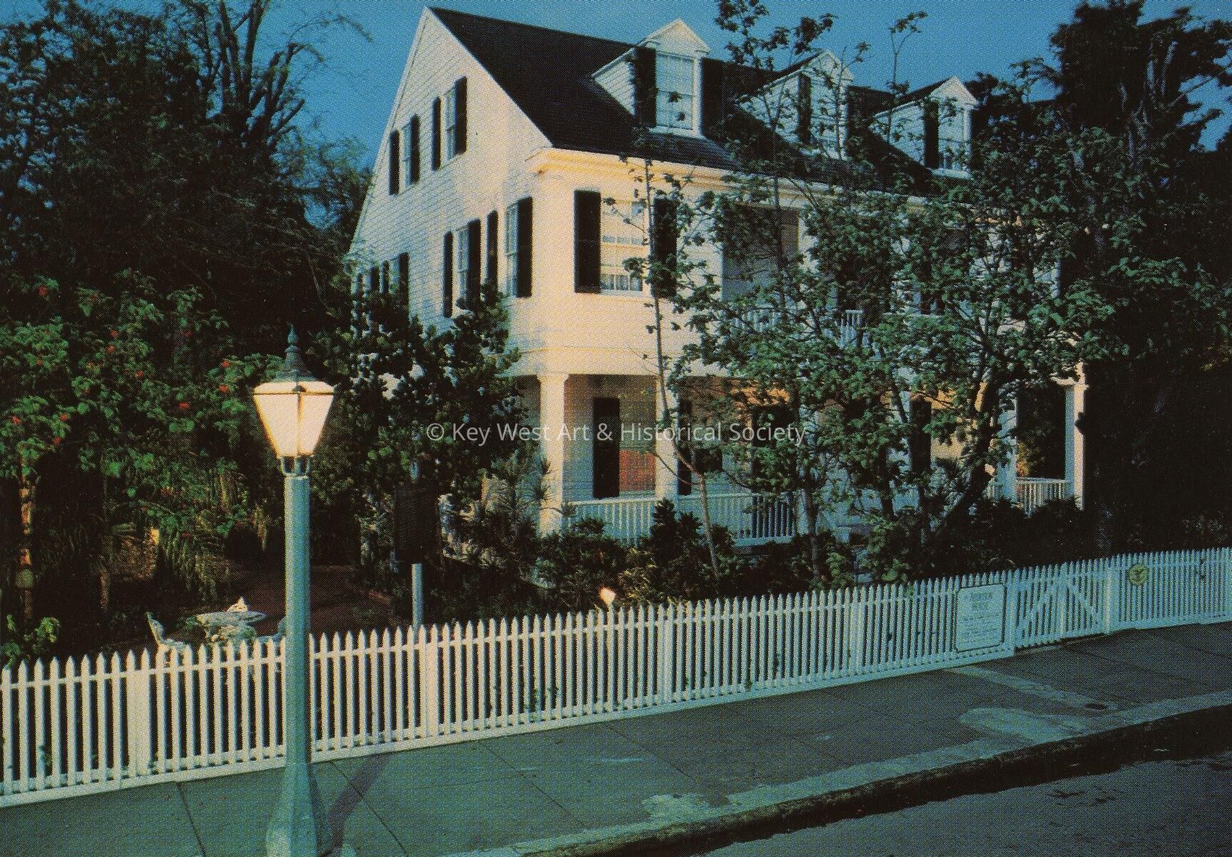 Postcard depicting the Audubon House.  Description on verso reads, 'Audubon House - This lovely old Key West home is now restored and furnished with antiques.  James Audubon is said to have painted a portion of his Collection while a guest here.  His elephant Folio is on exhibit within the building.'Collection