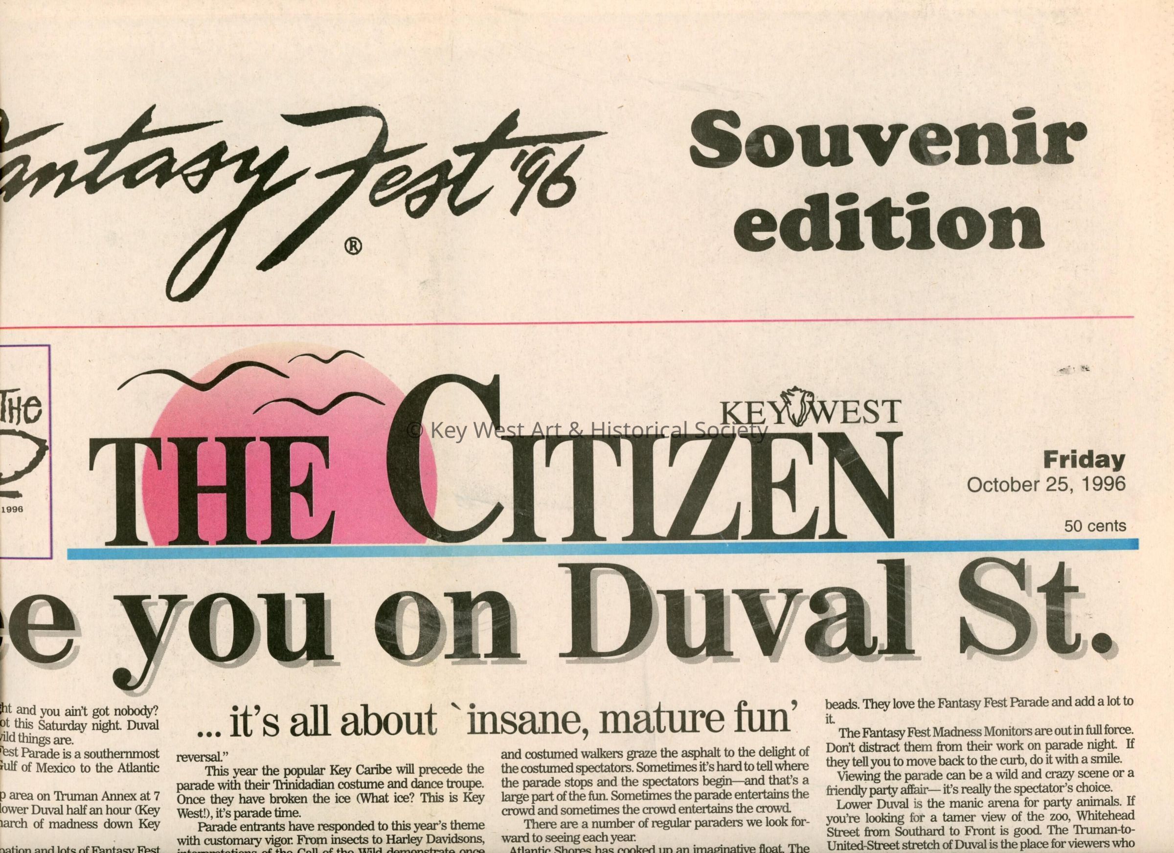 Multiple articles in the Key West Citizen about Fantasy Fest.