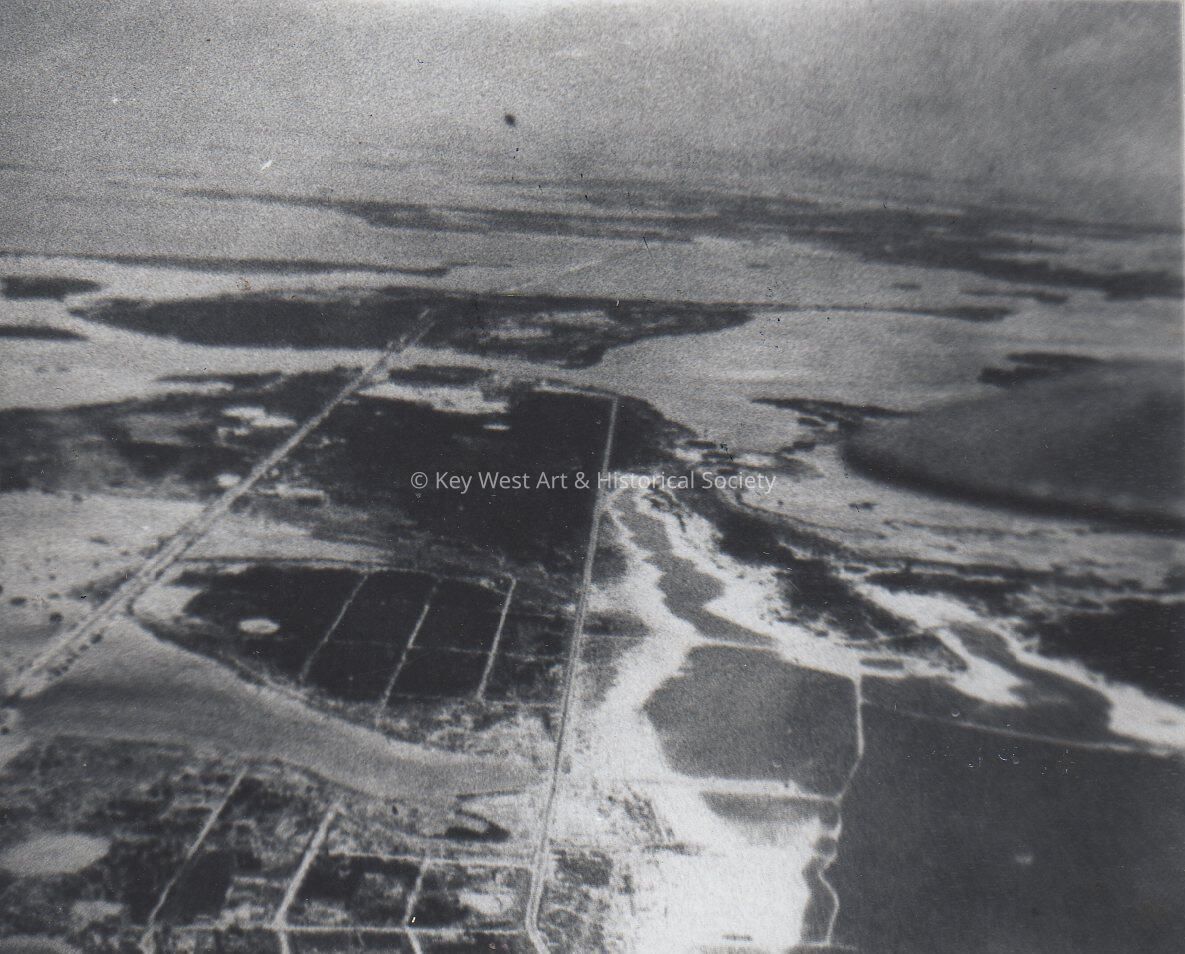 Aerial view of Boca Chica at top, Stock Island and east end of Key West County Road at center, and the salt ponds at bottom.Collection