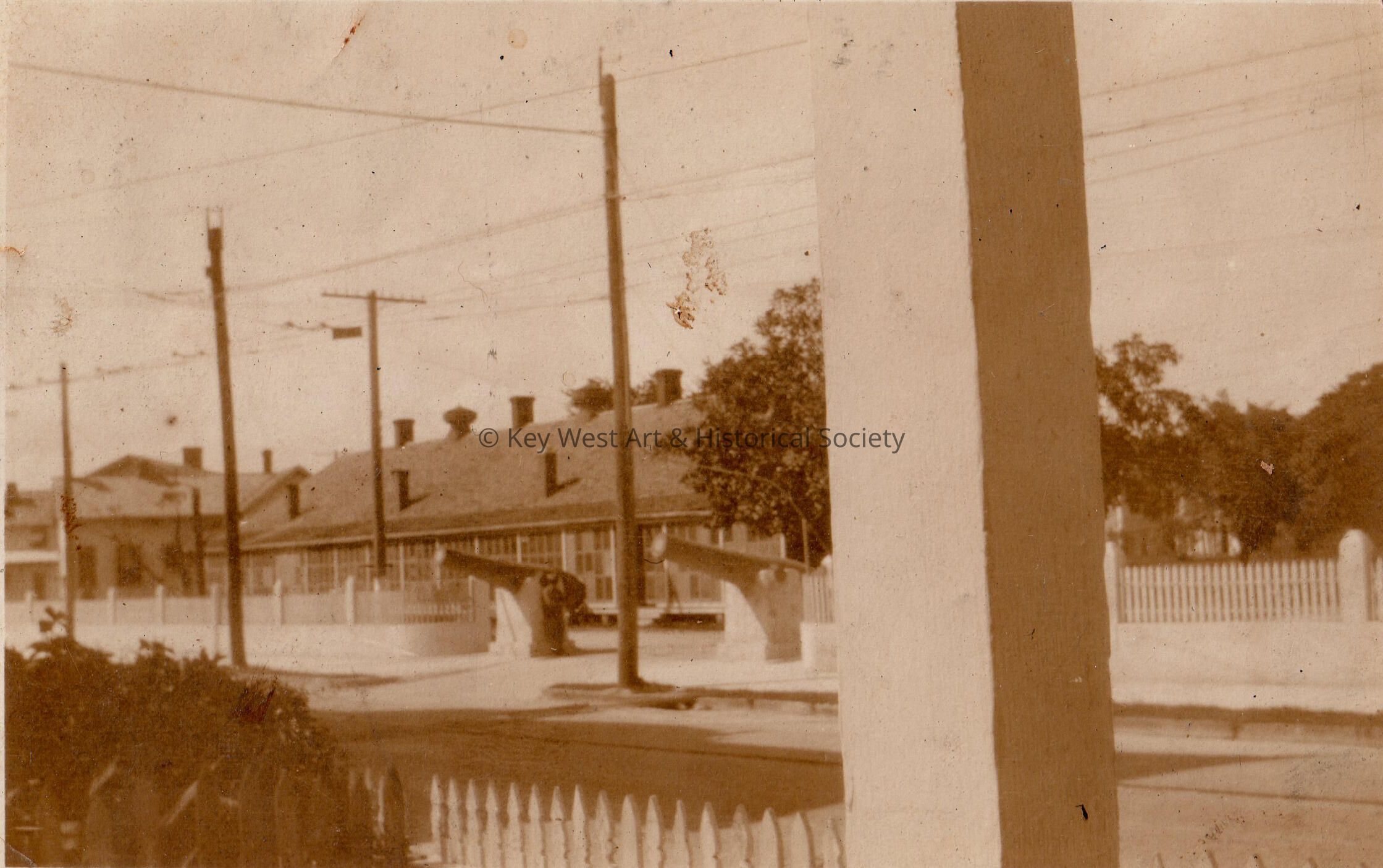 Cannons facing the street at the US Naval Station (now Peary Court), Key West during World War I.Collection