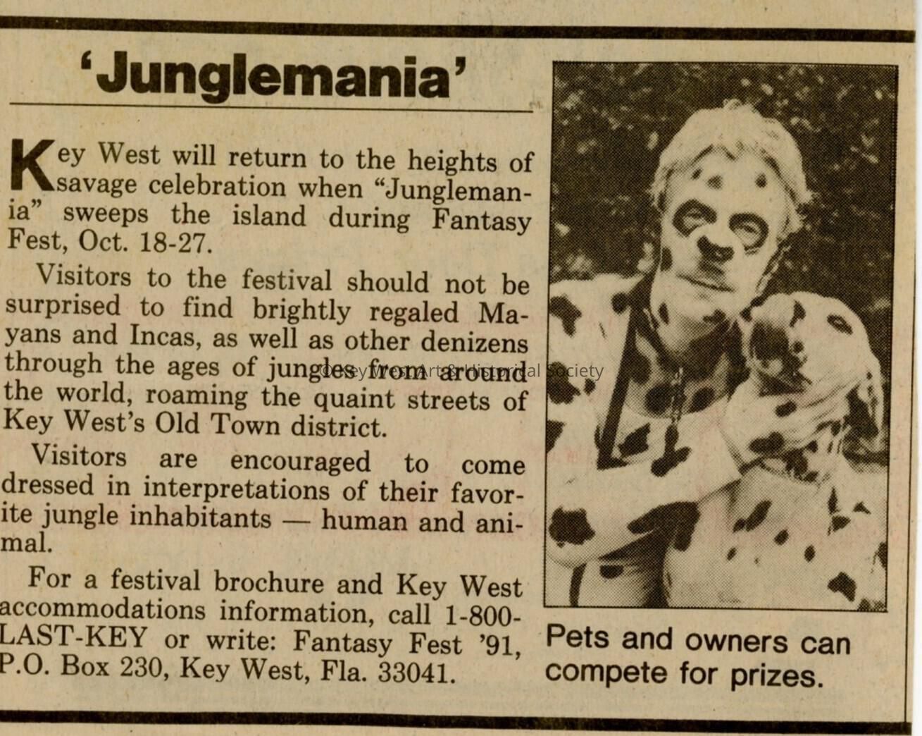An article in the Key West Citizen that reads Jungle mania.
