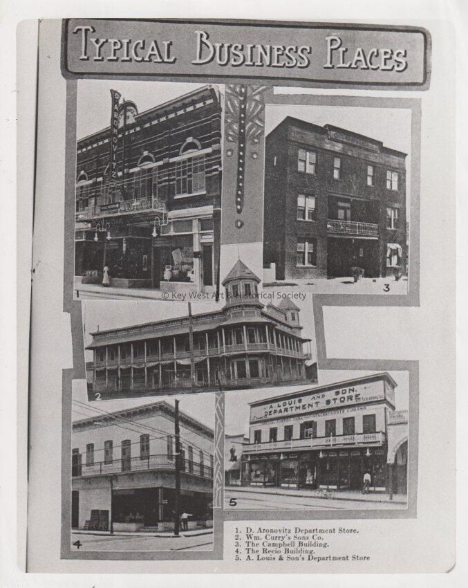 Typical Business Places. 1. D. Aronovitz Department Store. 2. Wm. Curry's Sons Co. 3. The Campbell Building. 4. The Recio Building. 5. A. Louis & Son's Department Store.Copyright
