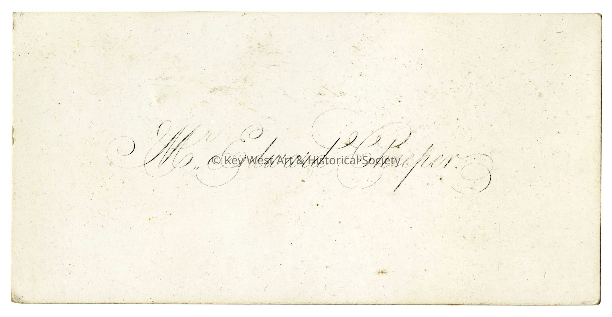 Paper calling card printed with the name Mr. Edward Cheeper. It was contained in a leather calling card holder that belonged to Edward Cheeper.