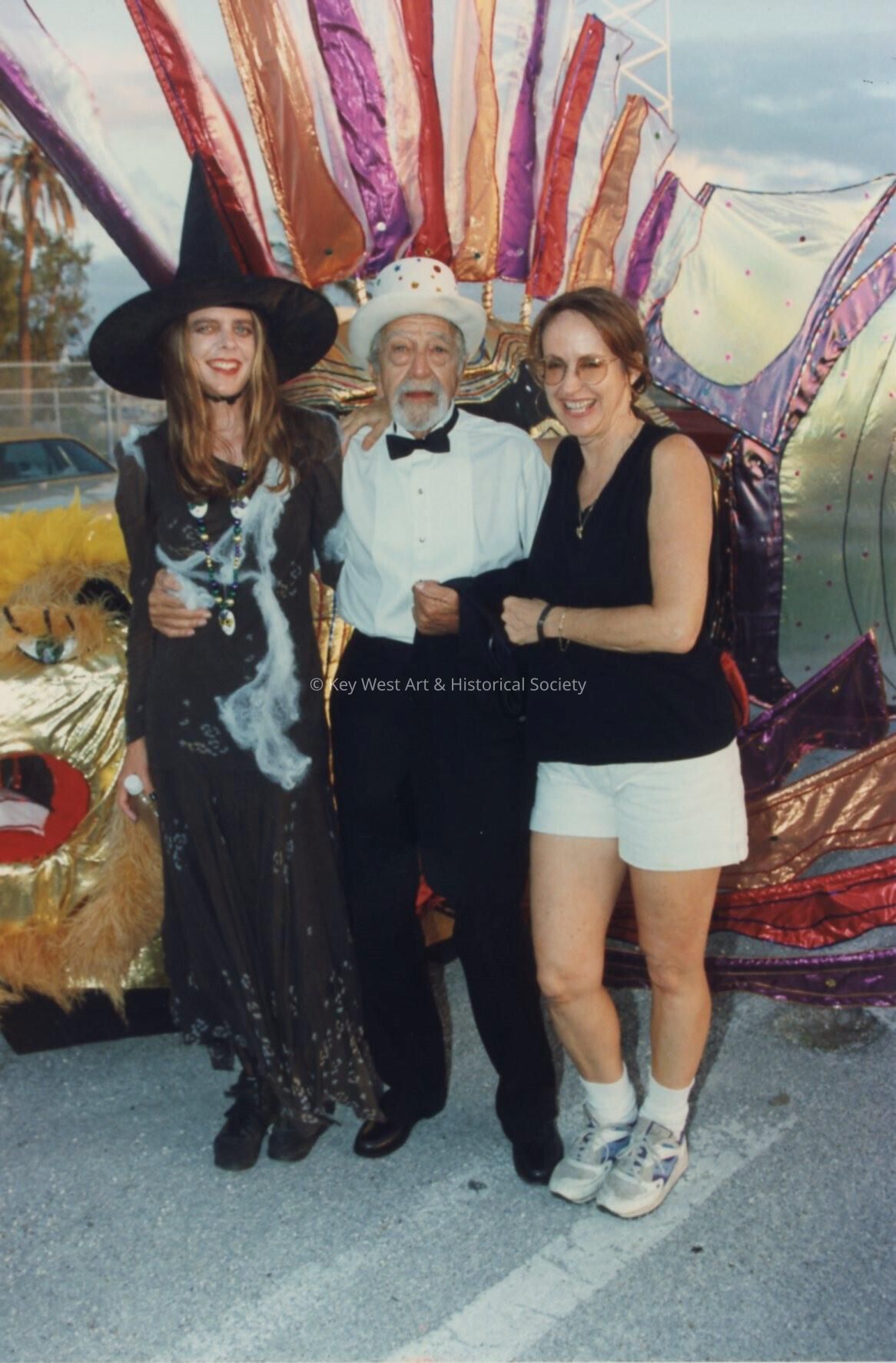 Capt. Tony and two unknown woman standing with a float.Collection