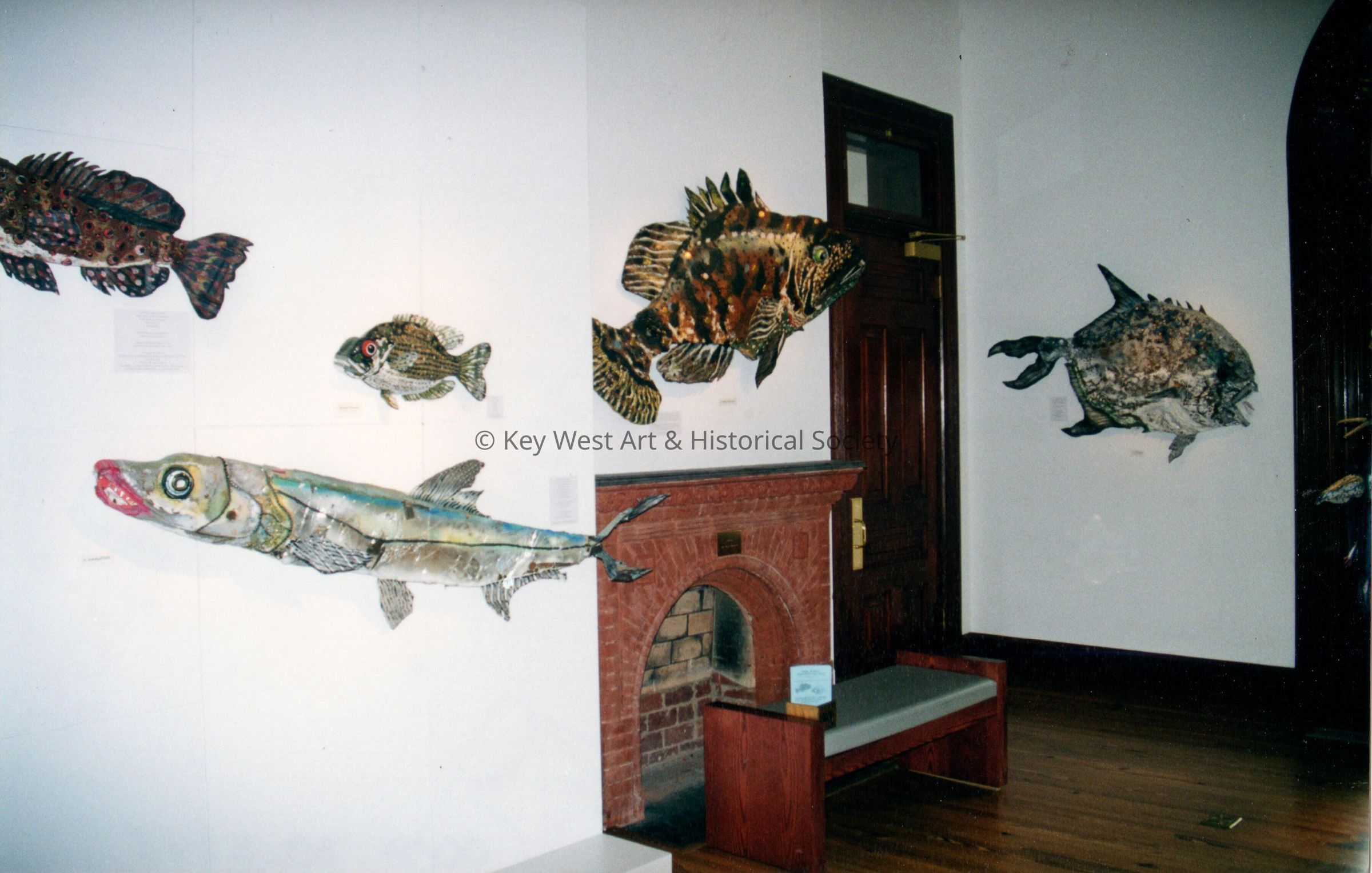 Color photograph of children and adults visiting the Captain Honk exhibit staged in the Bumpus Gallery of the Custom House Museum.Collection