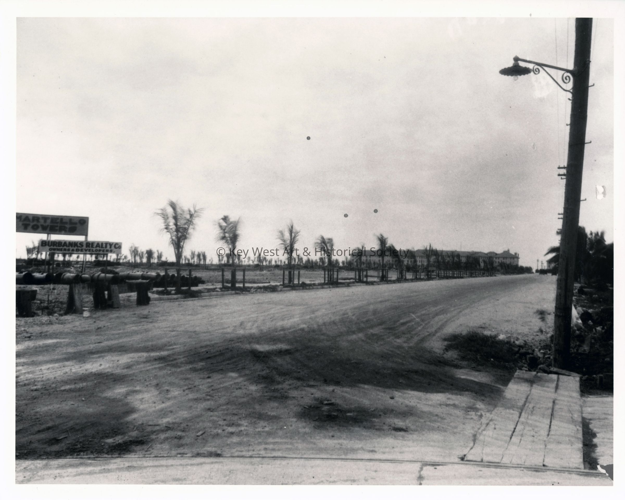 Black and white photograph of land development near the Casa Marina Hotel and Flagler Avenue.