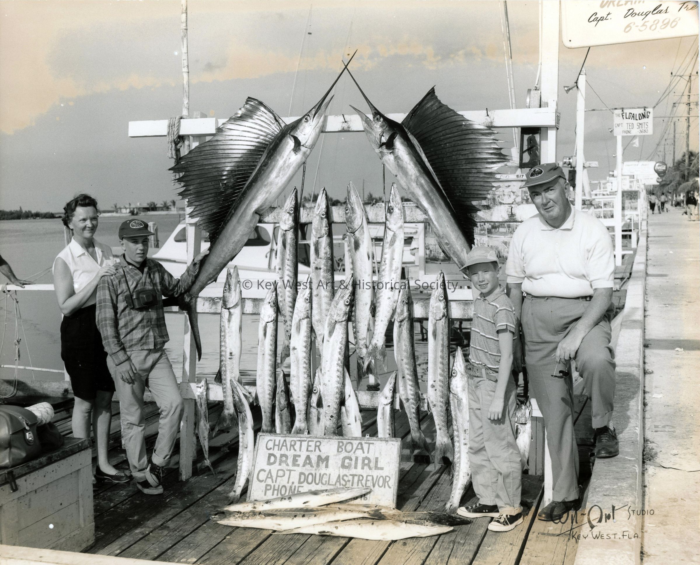 Black and white photograph of a catch made on the charter boat Dream Girl.