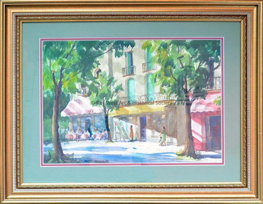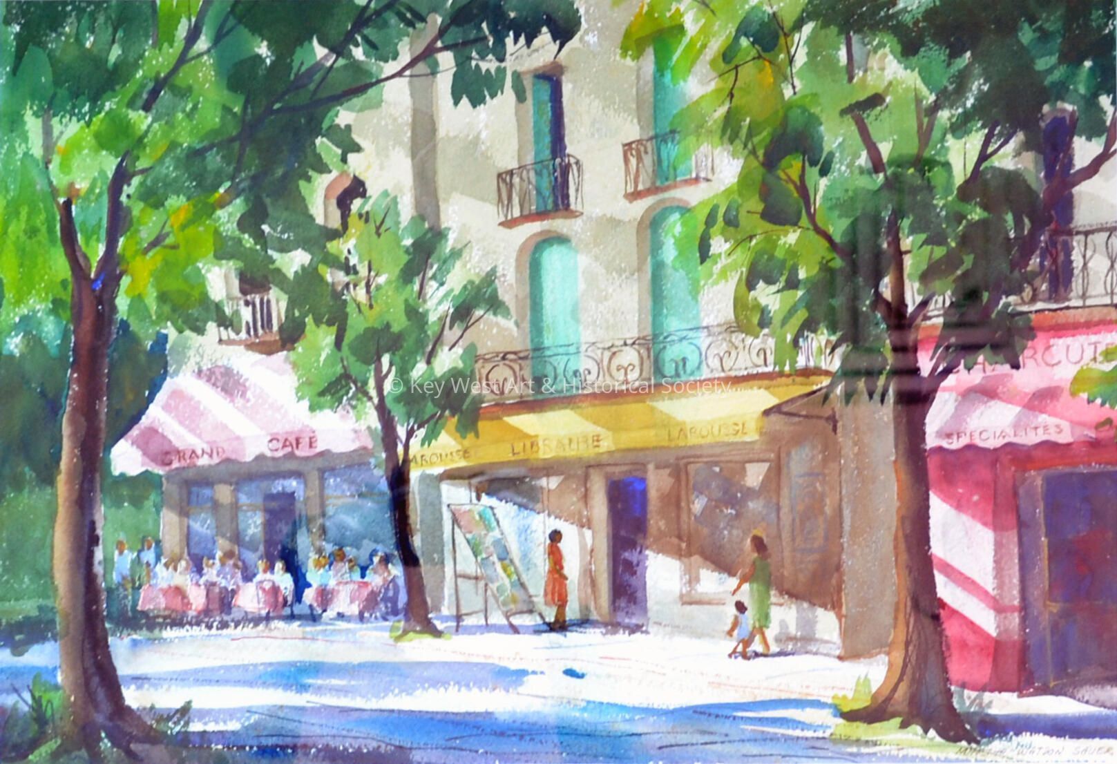 Watercolor painting by Martha Watson Sauer of Ceret, France. Sauer and her husband Robert visited the city in 1973.Artwork Details