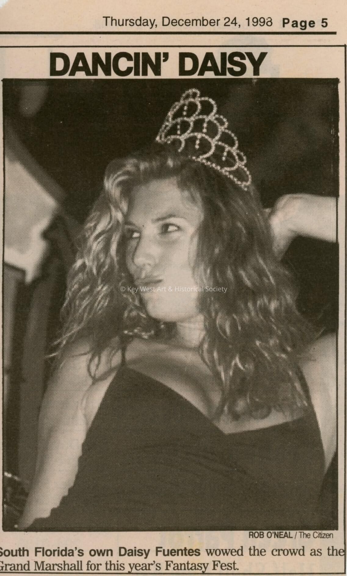 A picture of Daisy Fuentes the grand marshal in the Key West Citizen.
