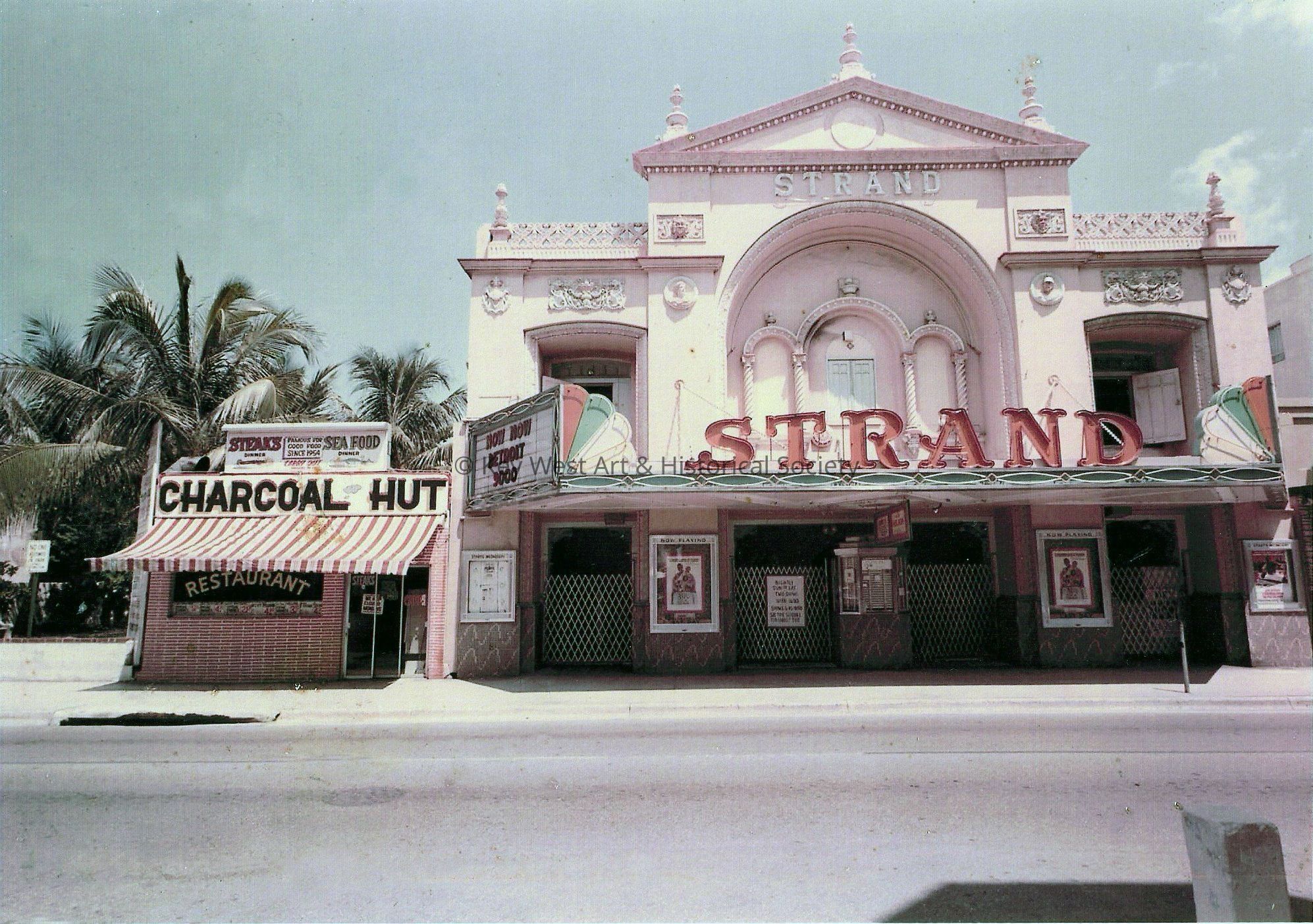 Color digital photograph of the Strand Theatre on the 500 block of Duval Street. The image was part of a 'Then and Now' series run the Key West Citizen.
