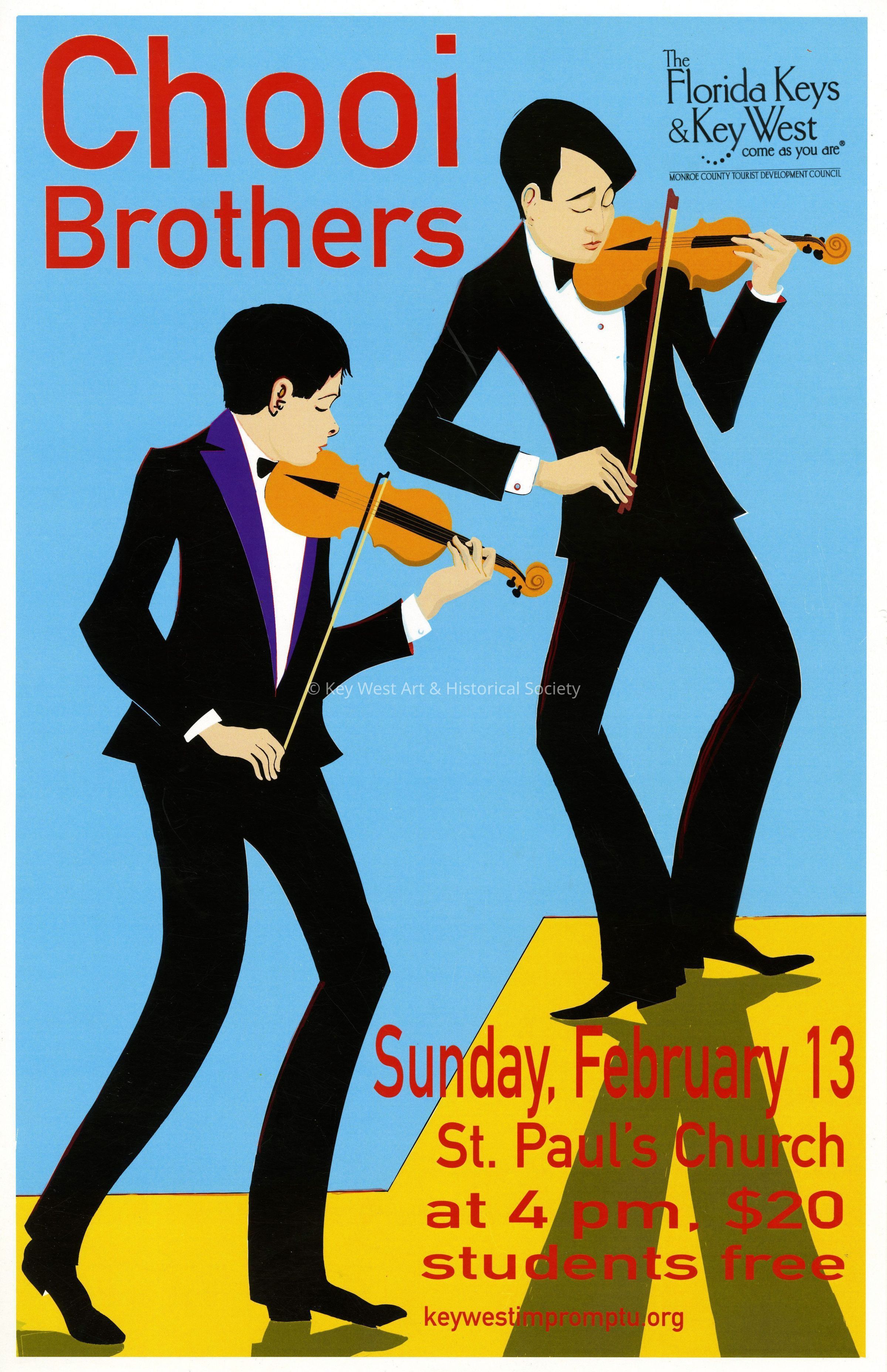 An advertising poster for Impromptu Classical Concerts entitled 'Chooi Brothers'. The concert took place on February 13, 2022 at St. Paul's Episcopal Church at 401 Duval Street.Collection