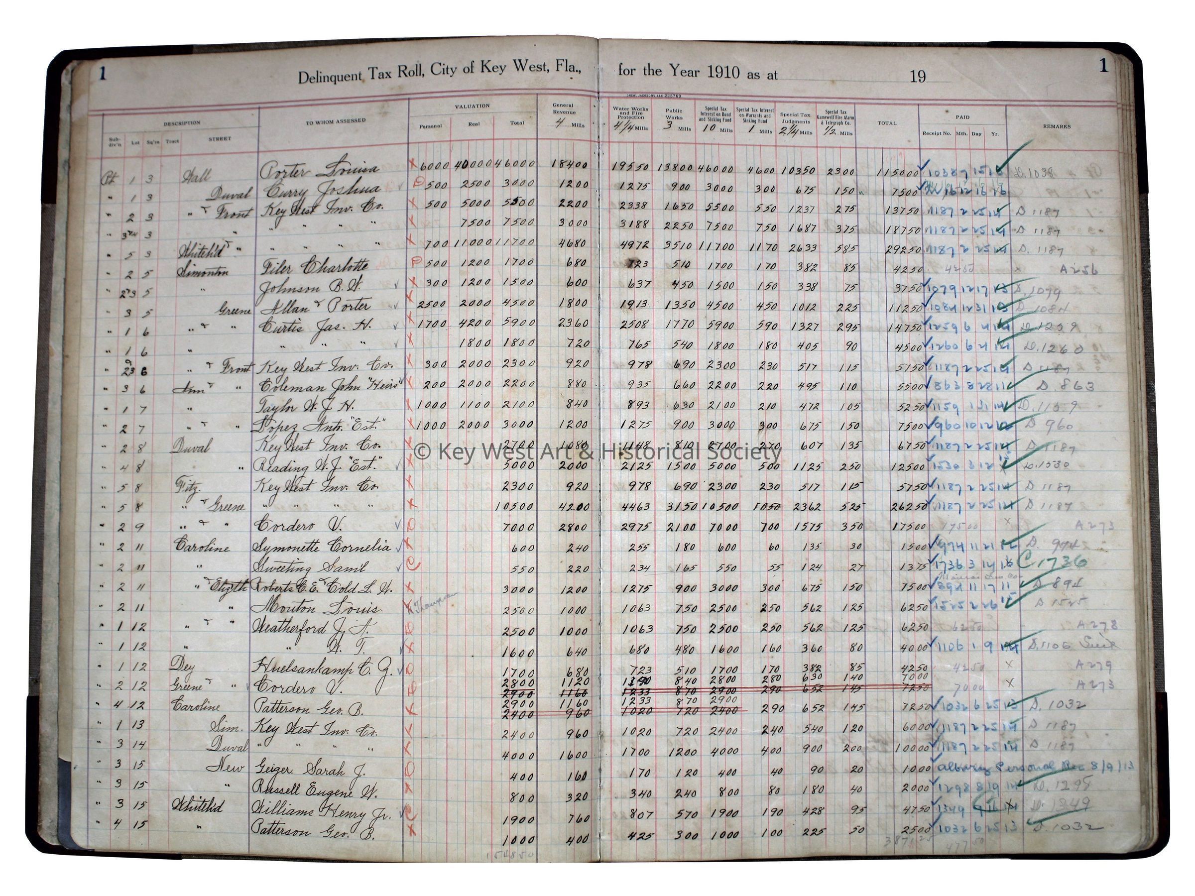 City of Key West Delinquent Tax Roll Year 1910: © Key West Art & Historical Society