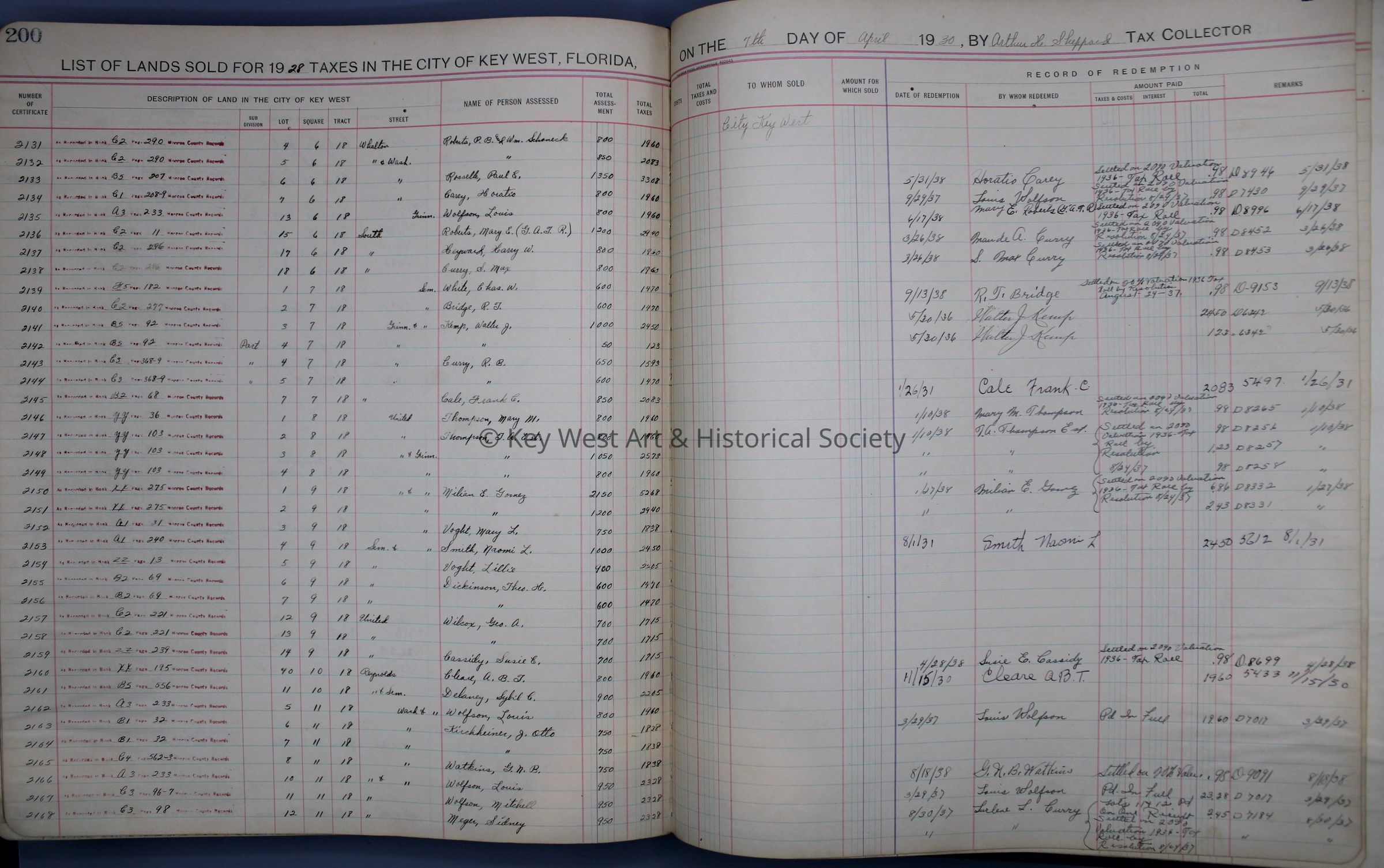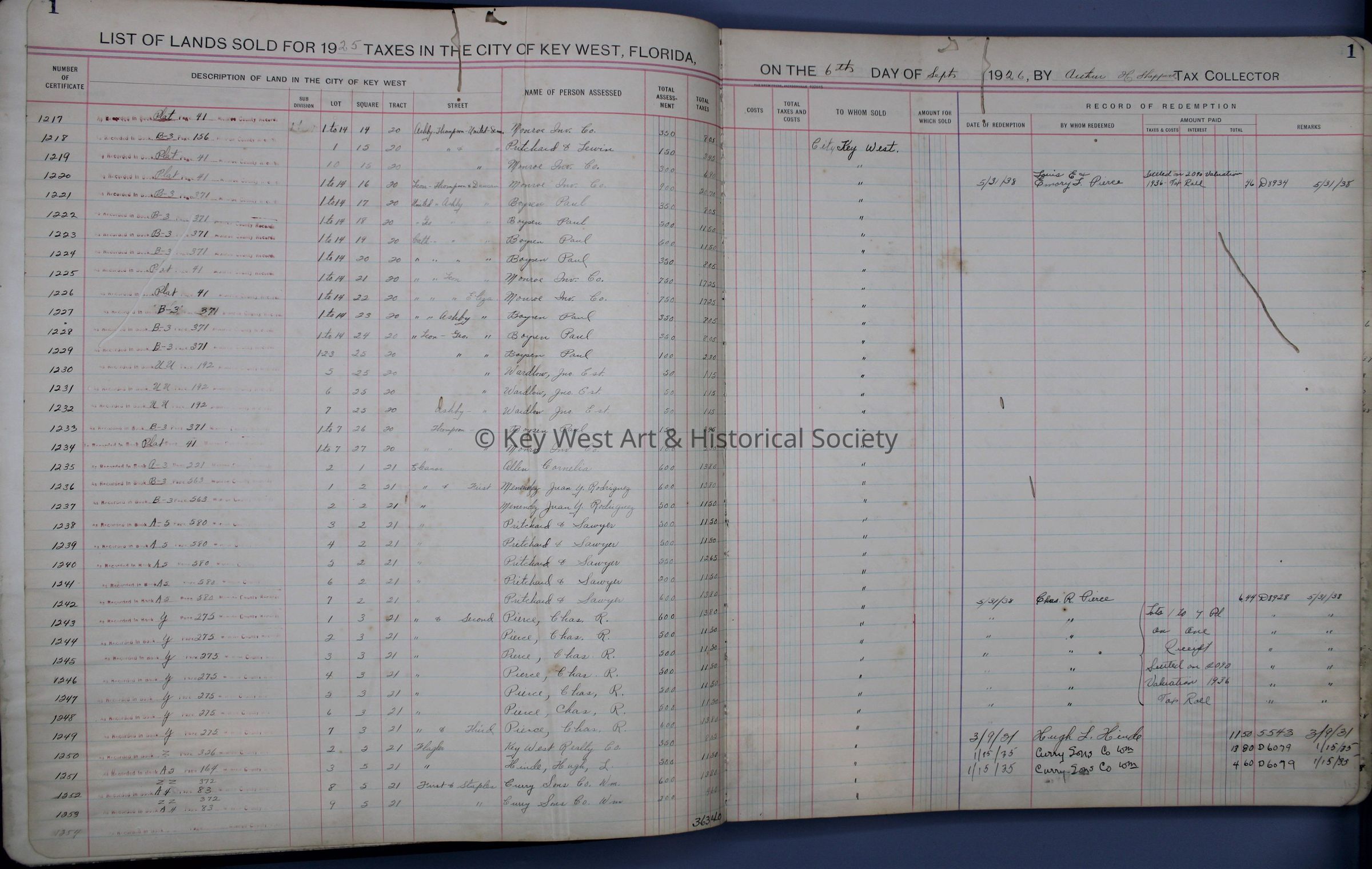 City of Key West Tax Sale Record: © Key West Art & Historical Society