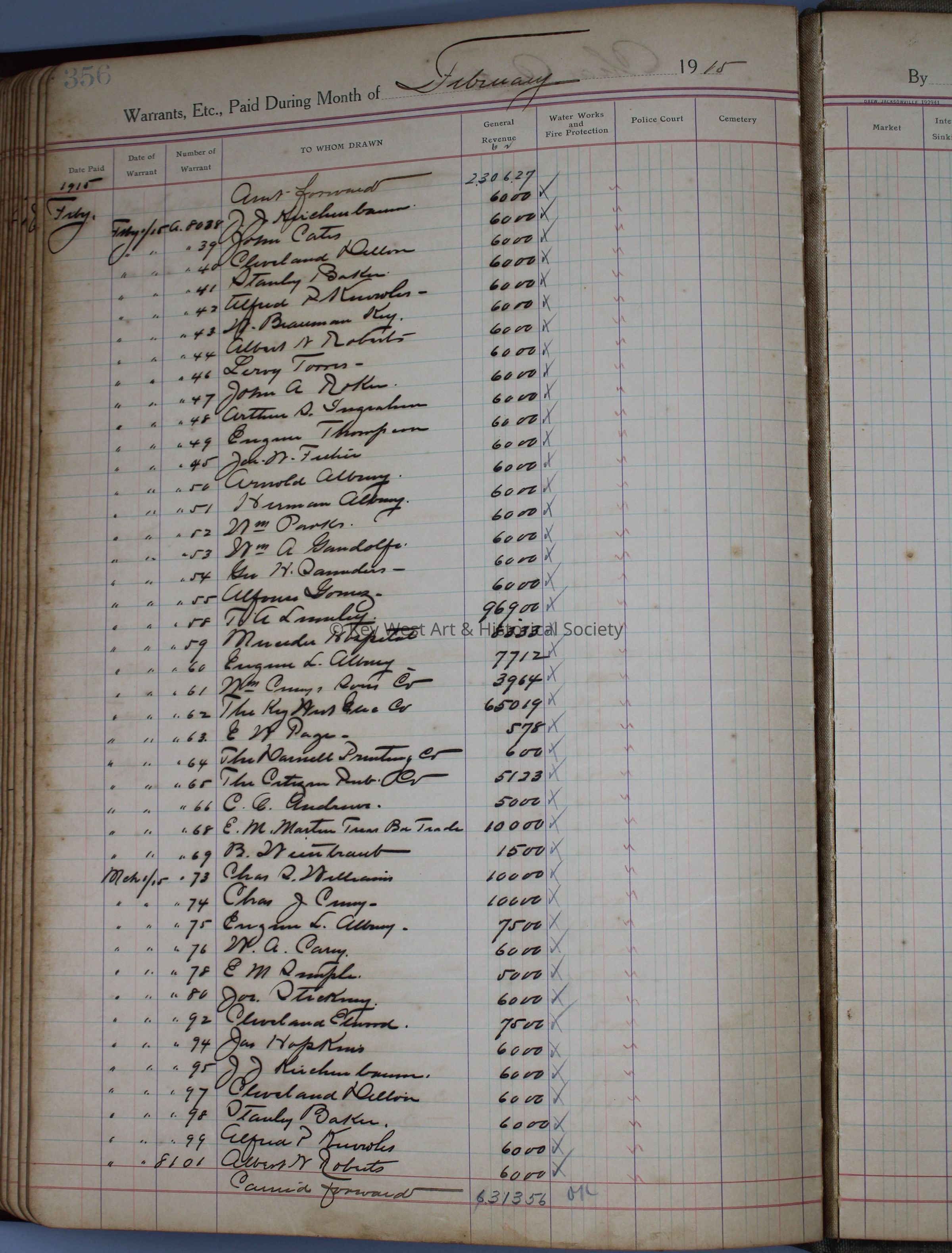 City of Key West Treasurer's Disbursements: © Key West Art & Historical Society