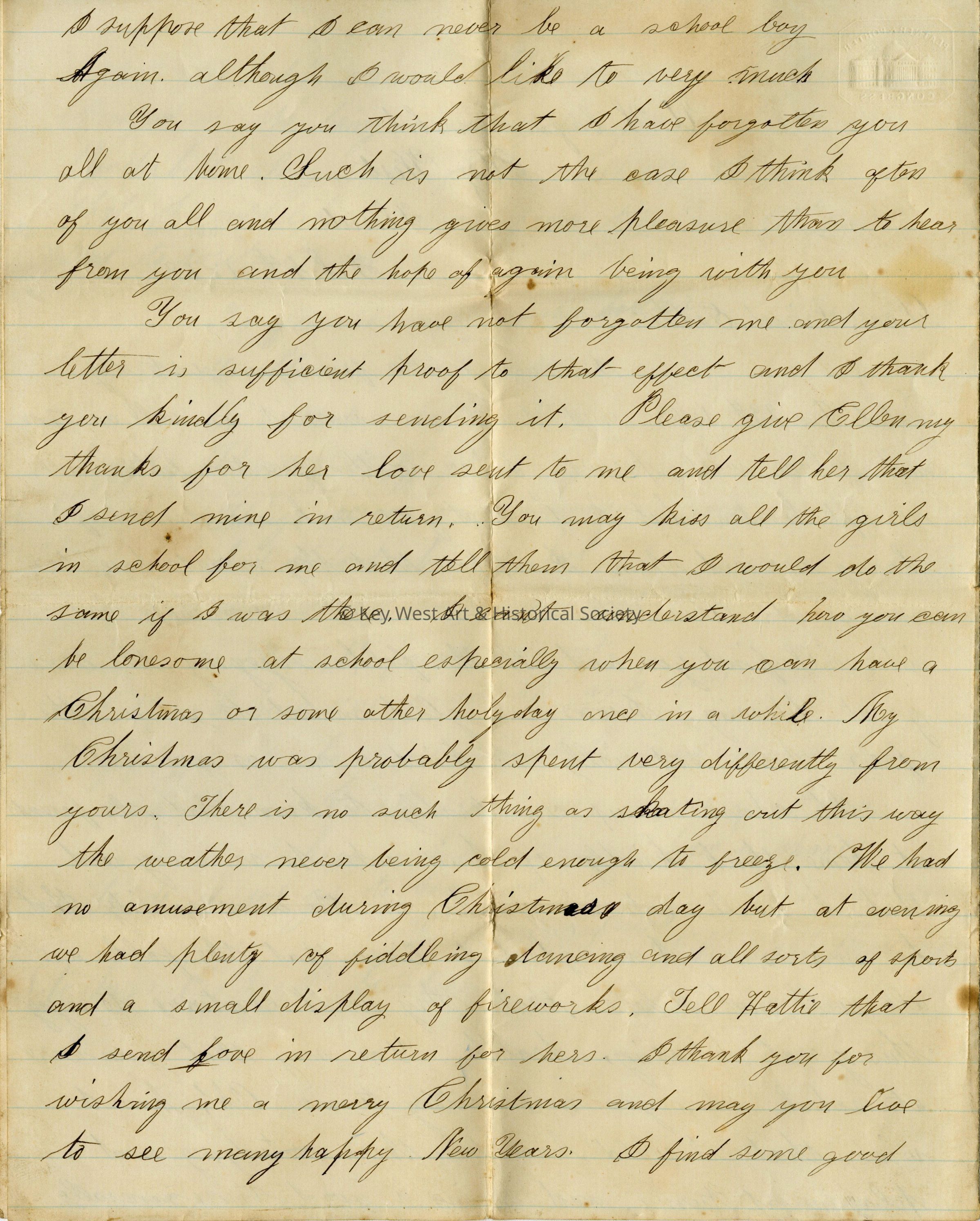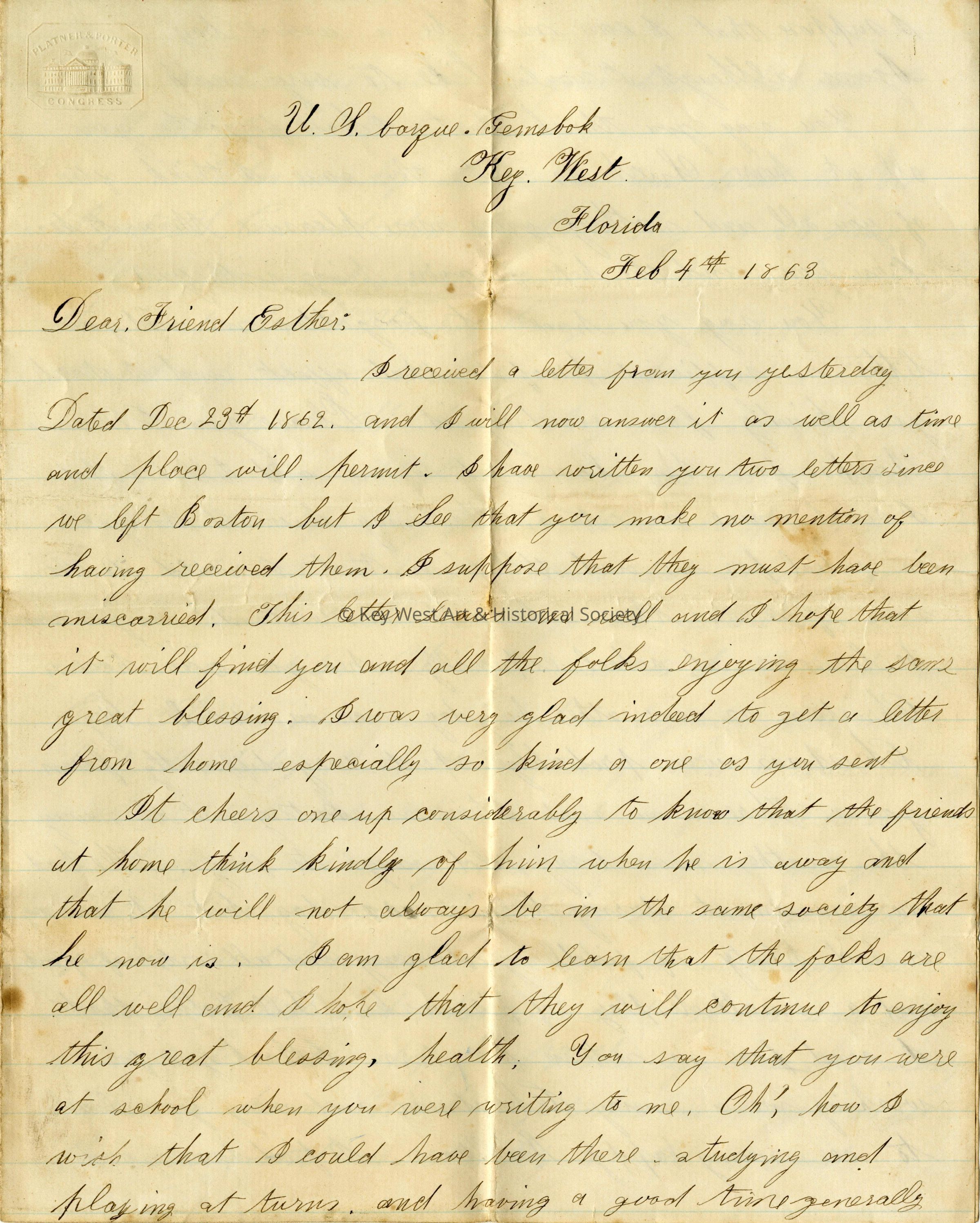 Civil War Letter from Key West aboard U.S. Bark GemsbokEntry/Object ID
