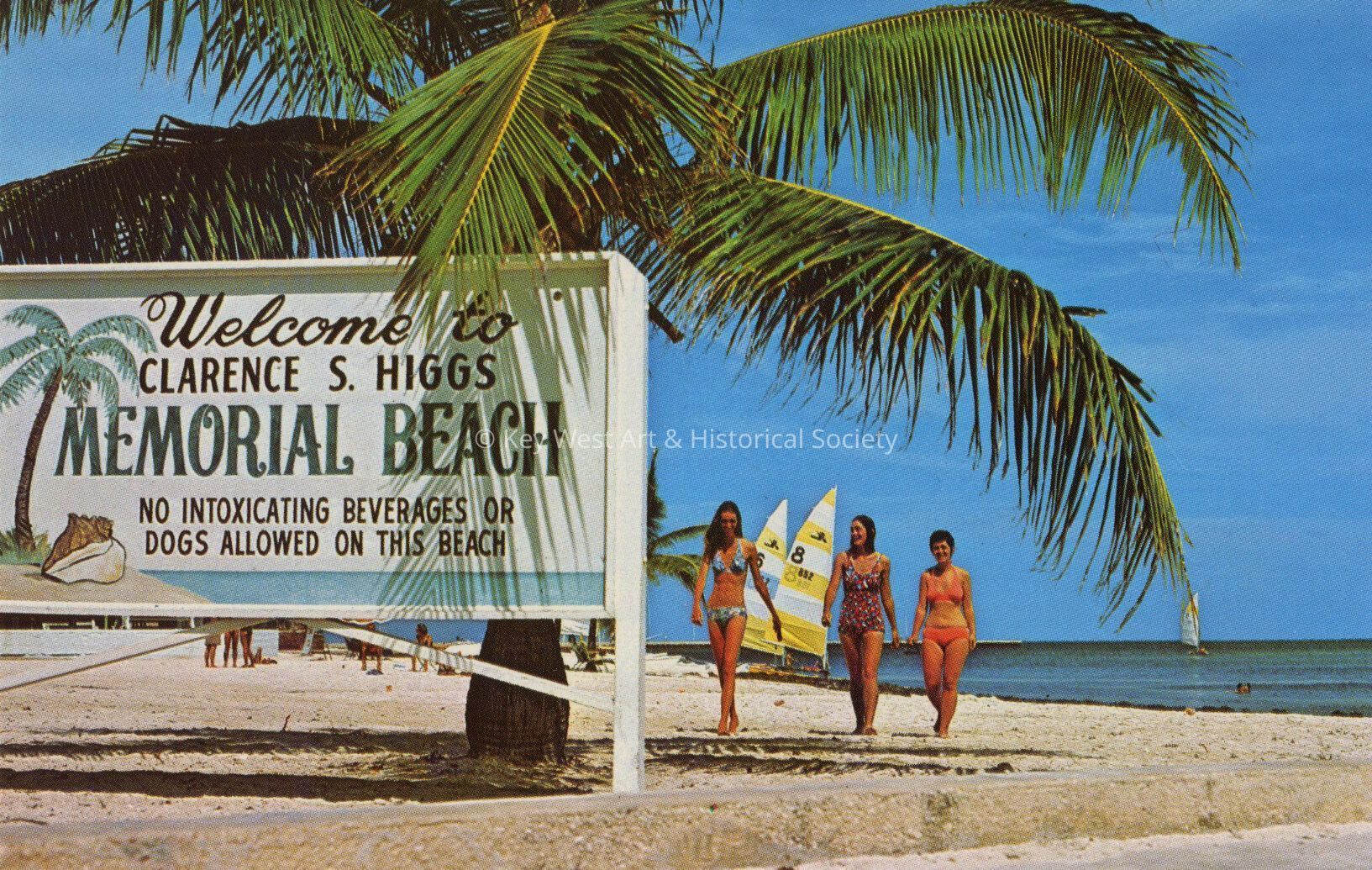 Color postcard depicting Clarence S. Higgs Memorial Beach.