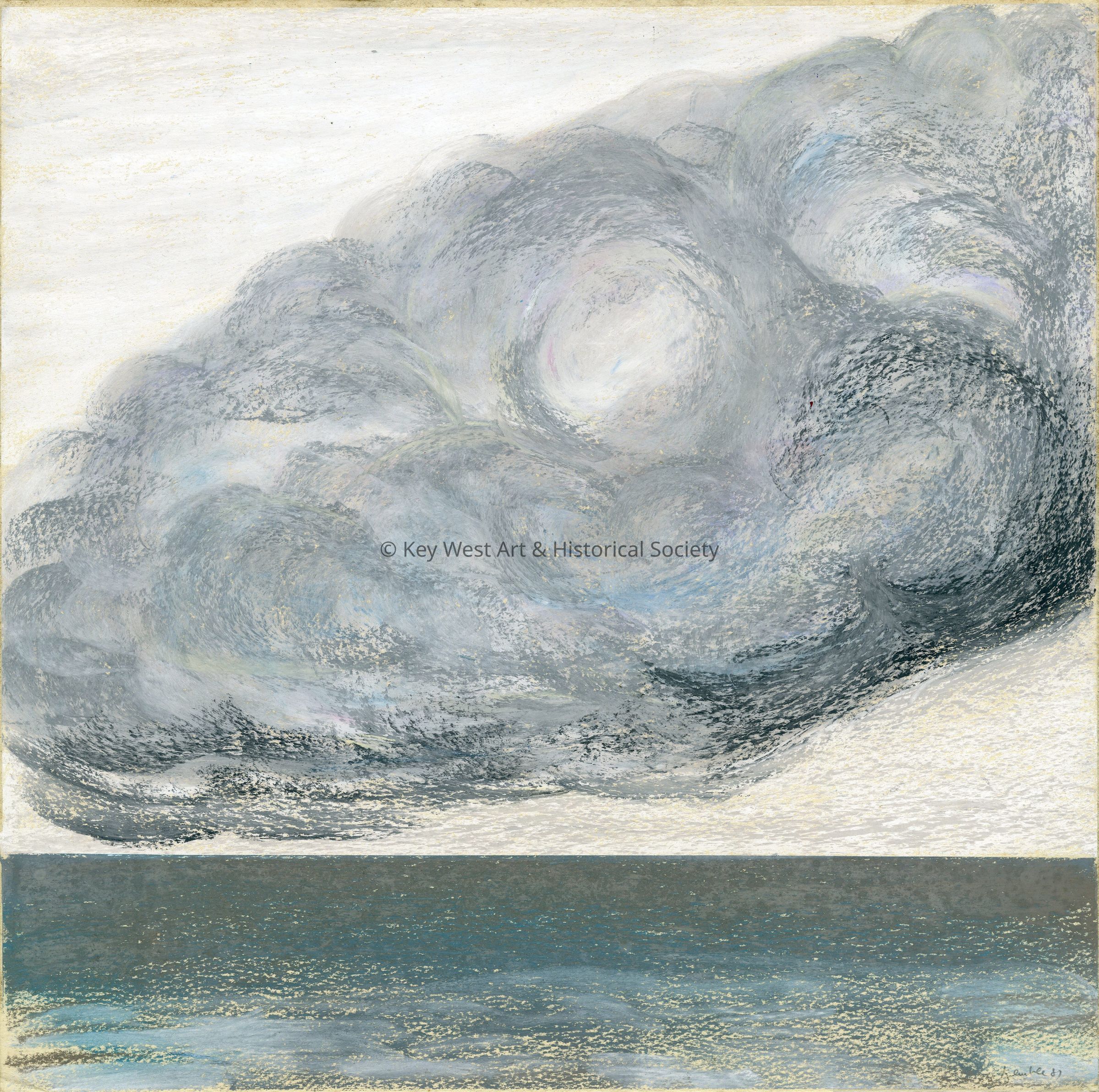Oil pastels on paper by Richard Kemble depicting a large storm cloud hovering over the turquoise waters of Key West.Artwork Details
