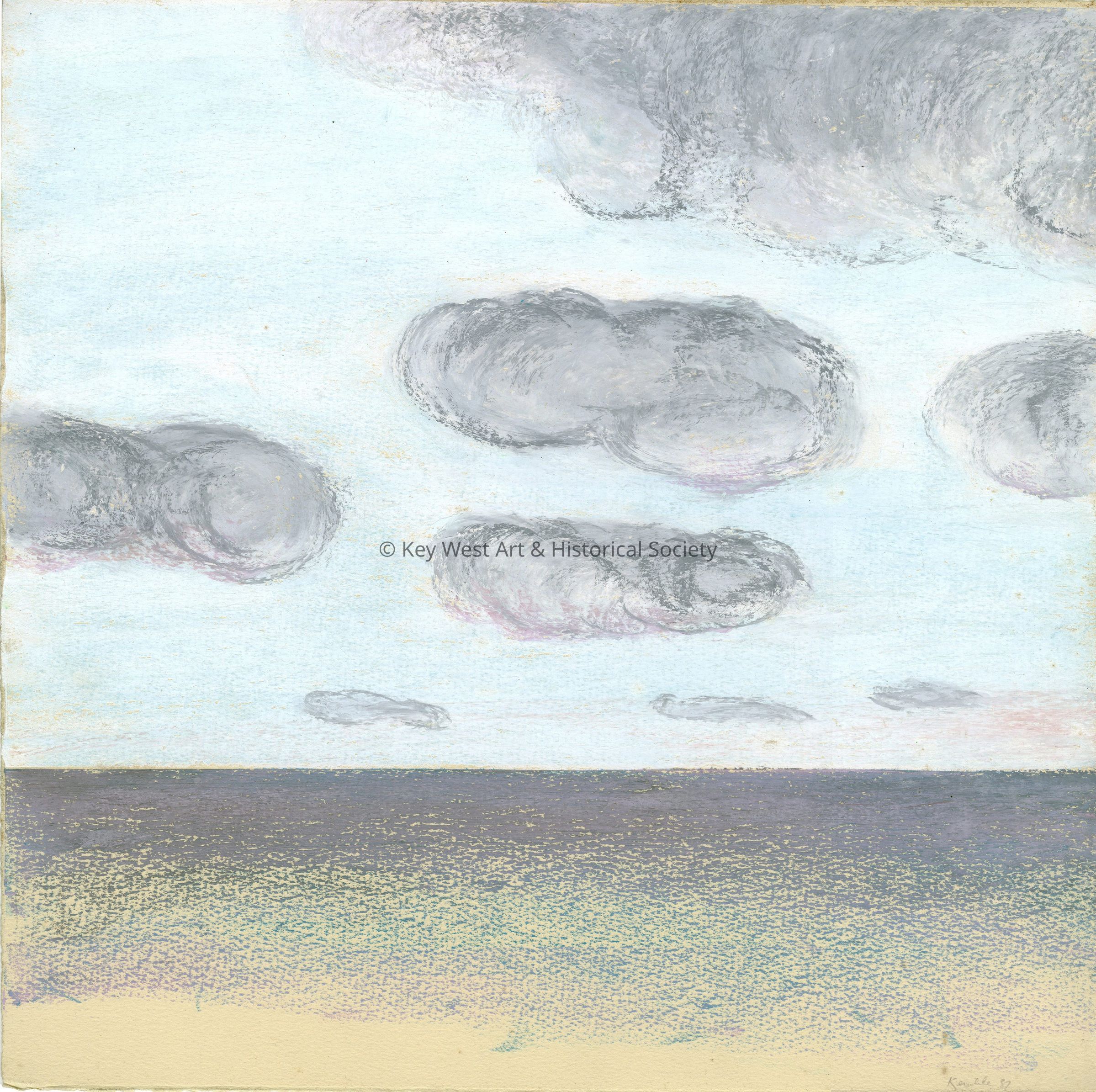 Oil pastels on paper by Richard Kemble depicting a large storm cloud hovering over the turquoise waters of Key West.Artwork Details