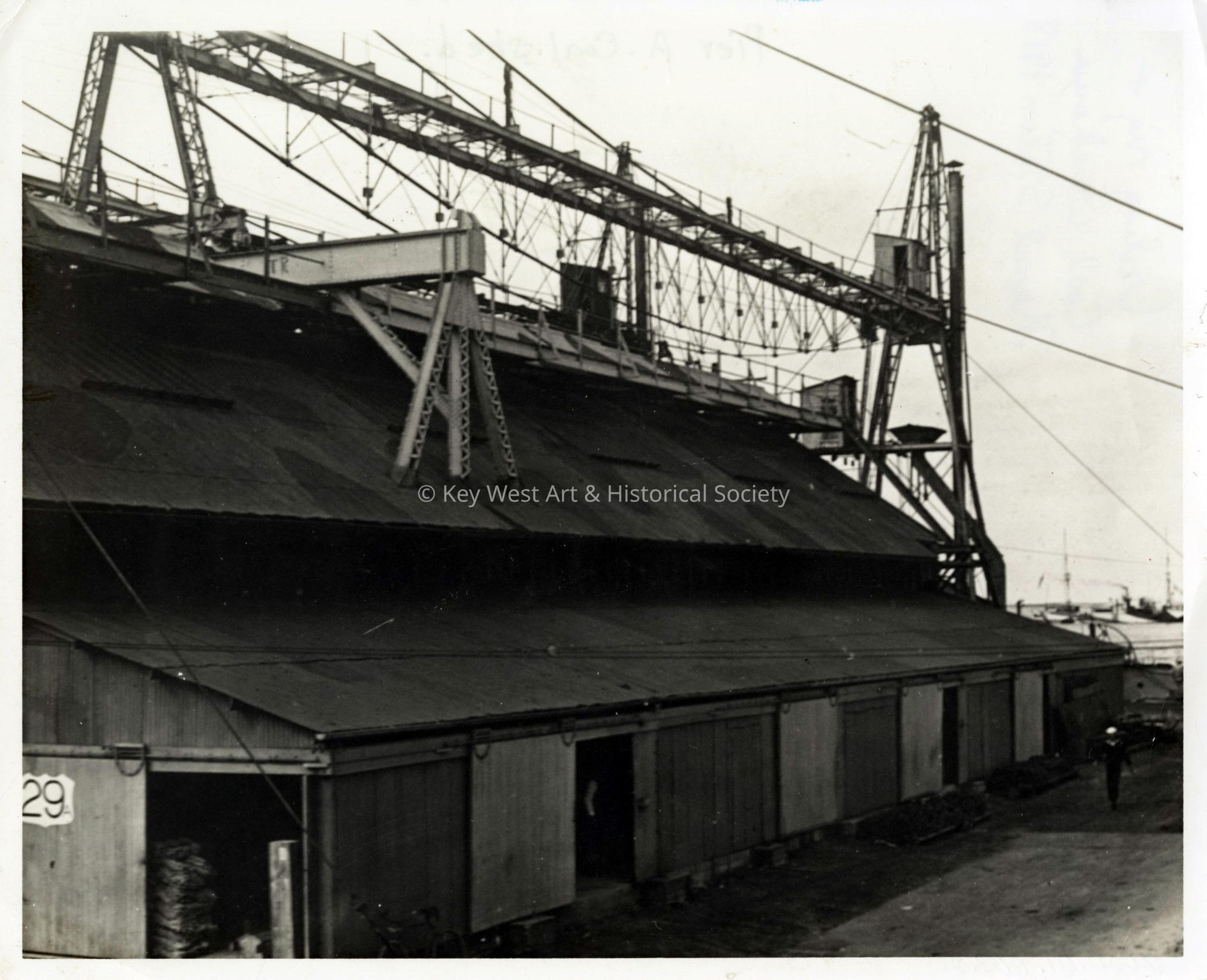 Black and white photograph of the coal shed at Pier A at the Naval Station Key West.
