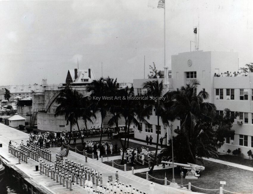 US Naval Station Key West - Former President Harry S. Truman is accorded honors during a parade and colors ceremony at Naval Base, Key West, on April 3, 1969. The Custom House is in the background.Collection