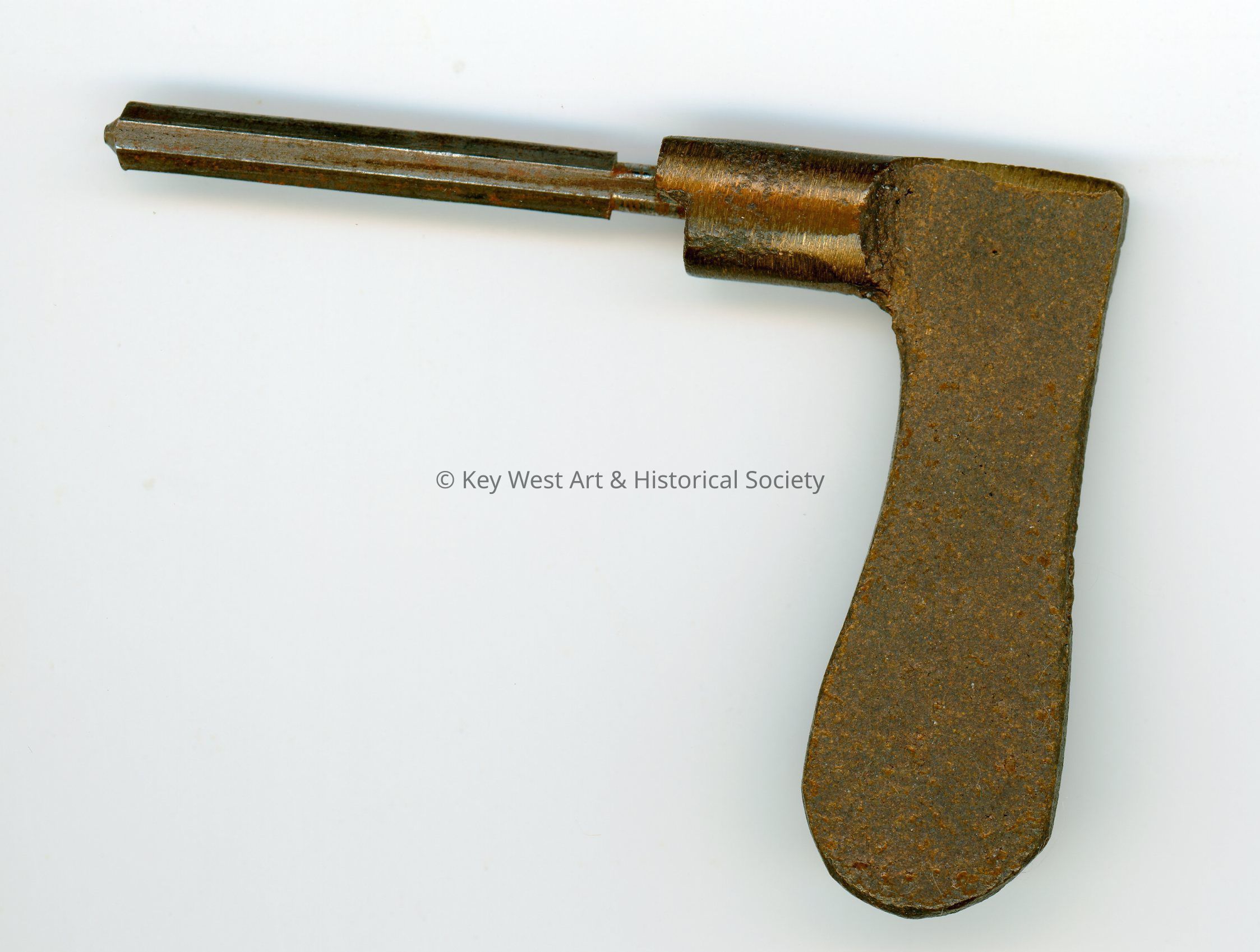 A bronze colored metal combination tool likely used by The First National Bank of Key West once located at 420 Front Street.Collection
