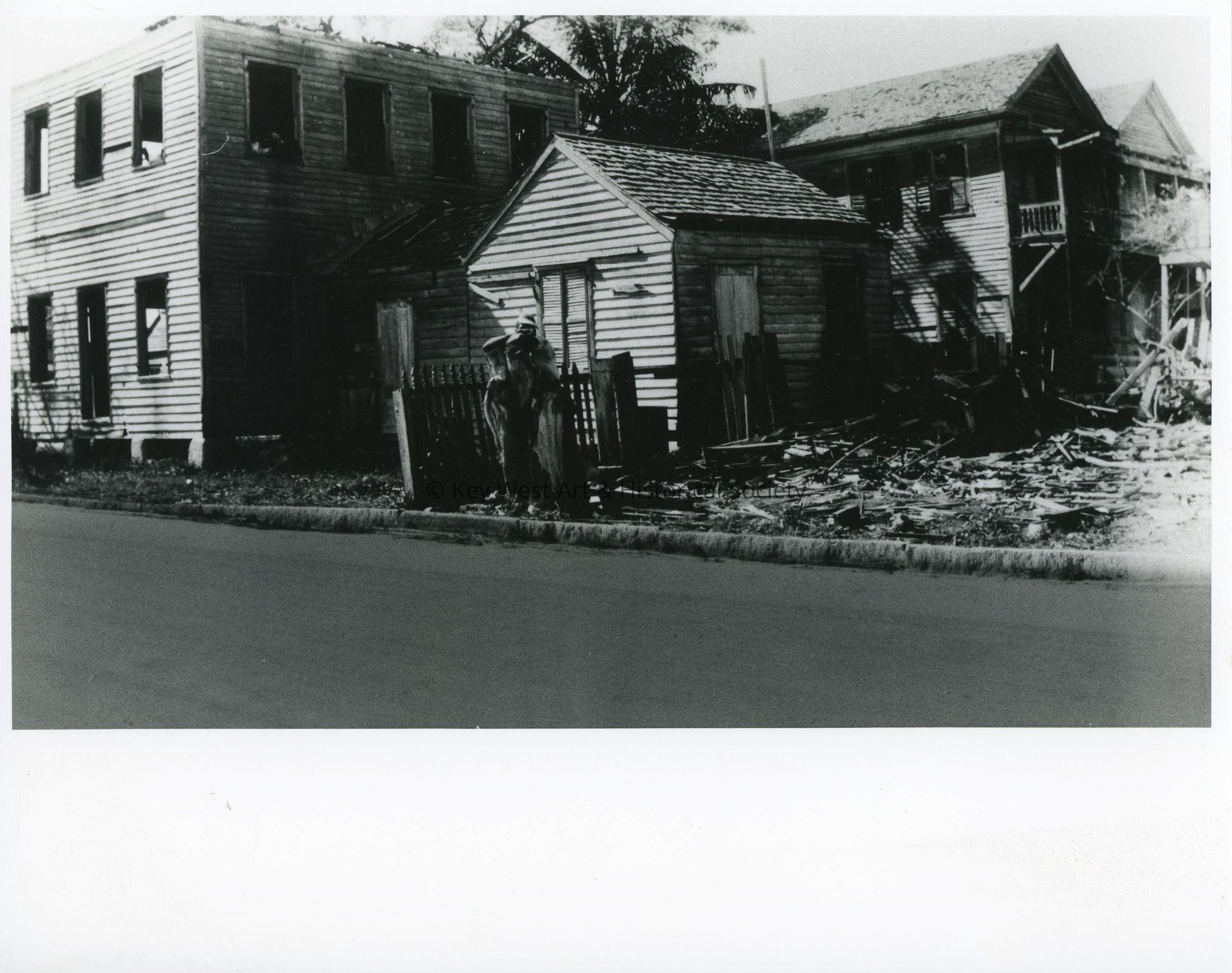Black and white photograph of damage after 1909 hurricane in Key West