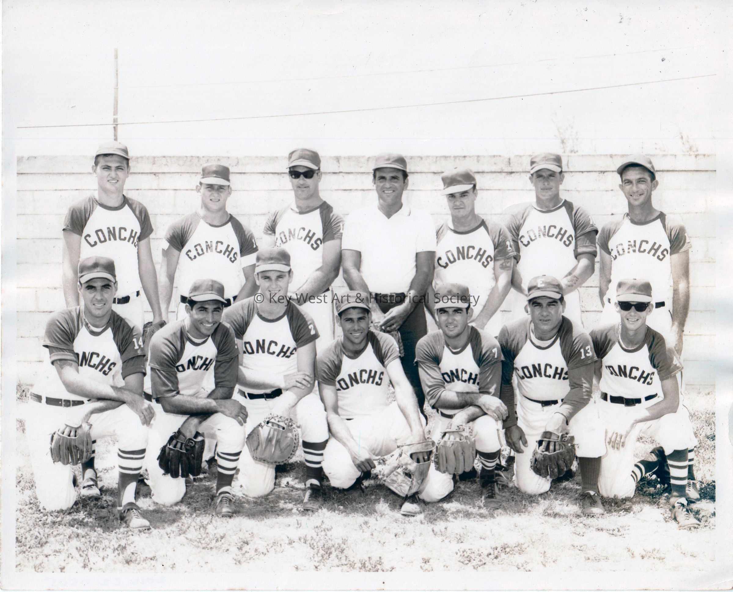 Black and white photograph of the Conchs baseball team.