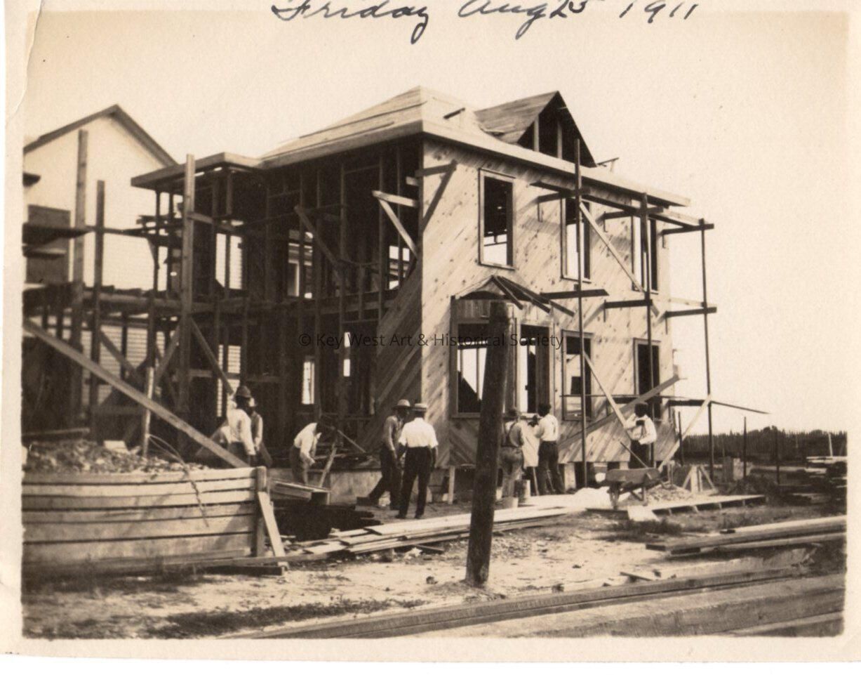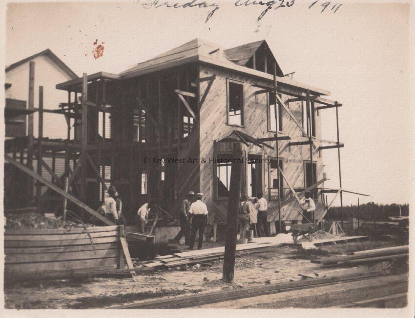 Black and white photograph of an unknown house being built taken on Friday, August 25, 1911. Photograph taken for the Blackstone Gas and Electric Company.Collection