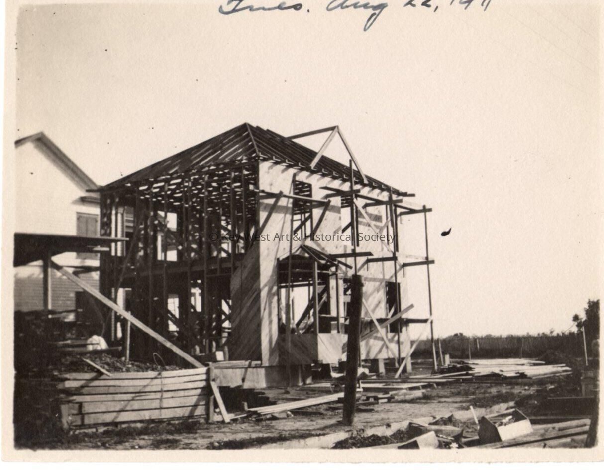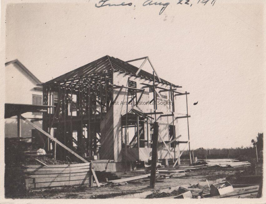 Black and white photograph of an unknown house being built taken on Tuesday, August 22, 1911. Photograph taken for the Blackstone Gas and Electric Company.Collection
