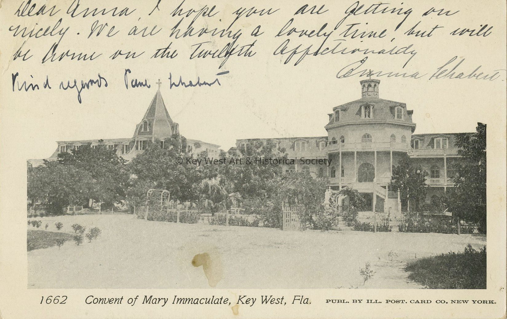 Postcard depicting the Convent of Mary Immaculate in Key West, Florida. Located on Division Street present day Truman Avenue.Collection