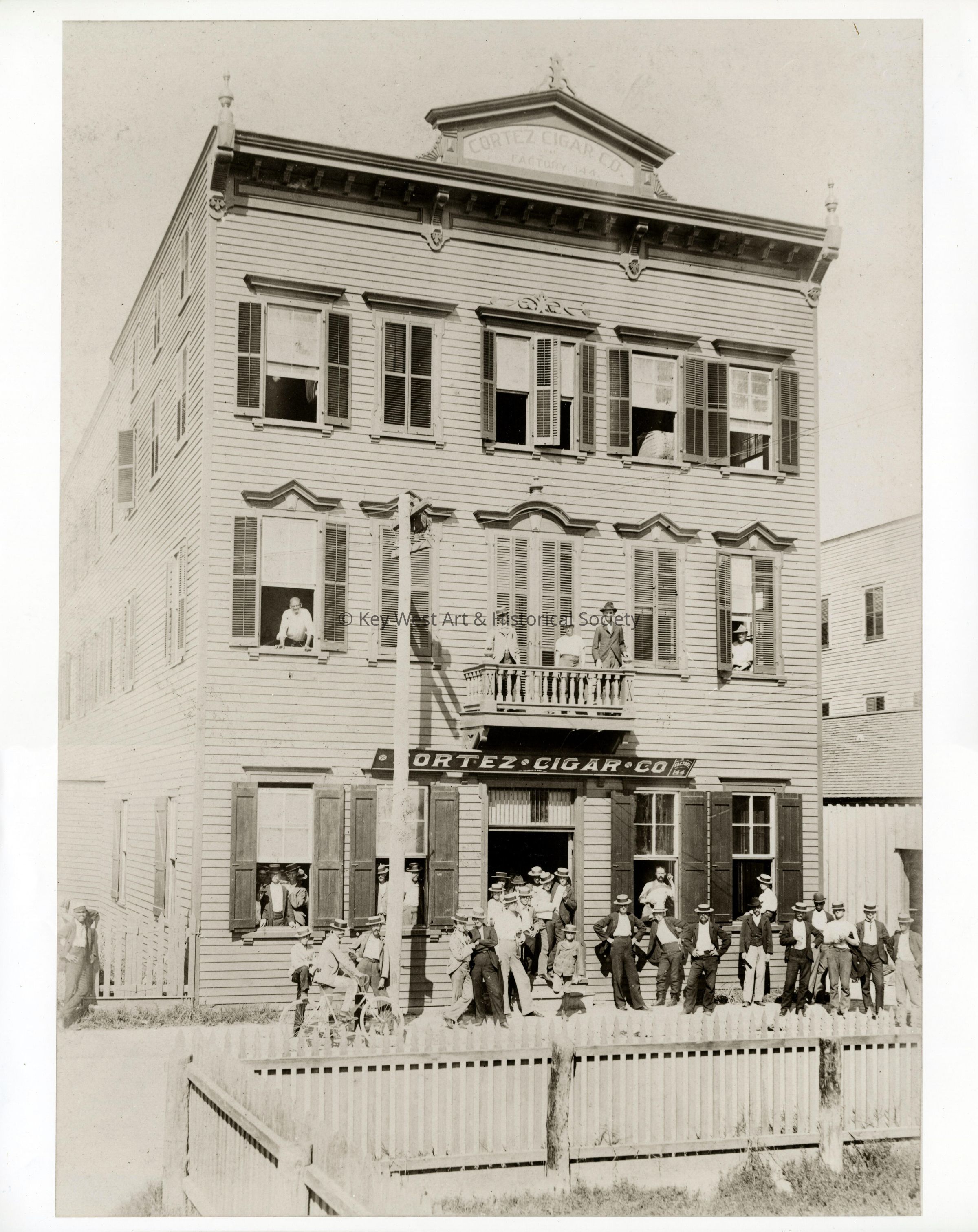 Black and white photograph of the Cortez Cigar Company Factory that formerly stood on the 100 block of Ann Street.