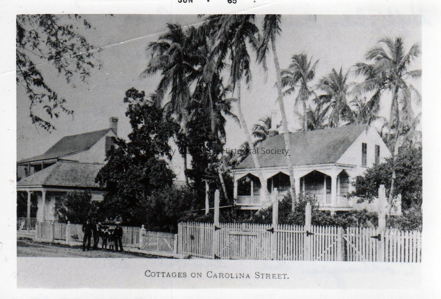 Black and white photograph several houses on Caroline Street (caption mistakenly refers to it is Carolina Street).