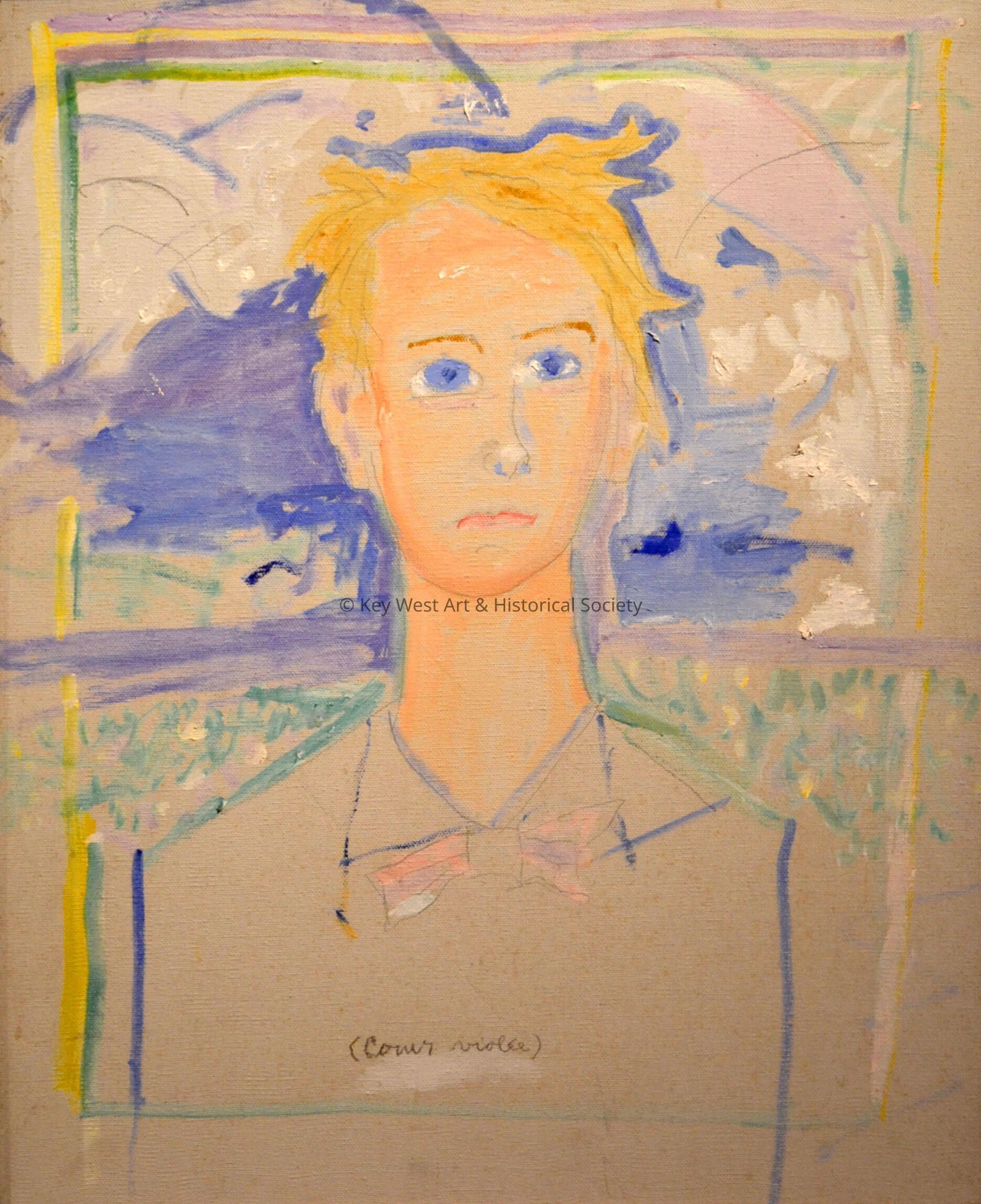 Oil and pencil portrait on canvas by Tennessee Williams depicting Jean Nicolas Arthur Rimbaud. 'Le Coeur Volé' (The Stolen Heart) is a version of a poem by Rimbaud that exists in a better-known version called 'Le Coeur Supplicié' (The Tortured Heart). Williams was influenced by the writings of Rimbaud, and often made allusions to the latter's poetry in his own writing. Here, Williams calls him 'Coeur Violée', or The Violated Heart.Type of Painting