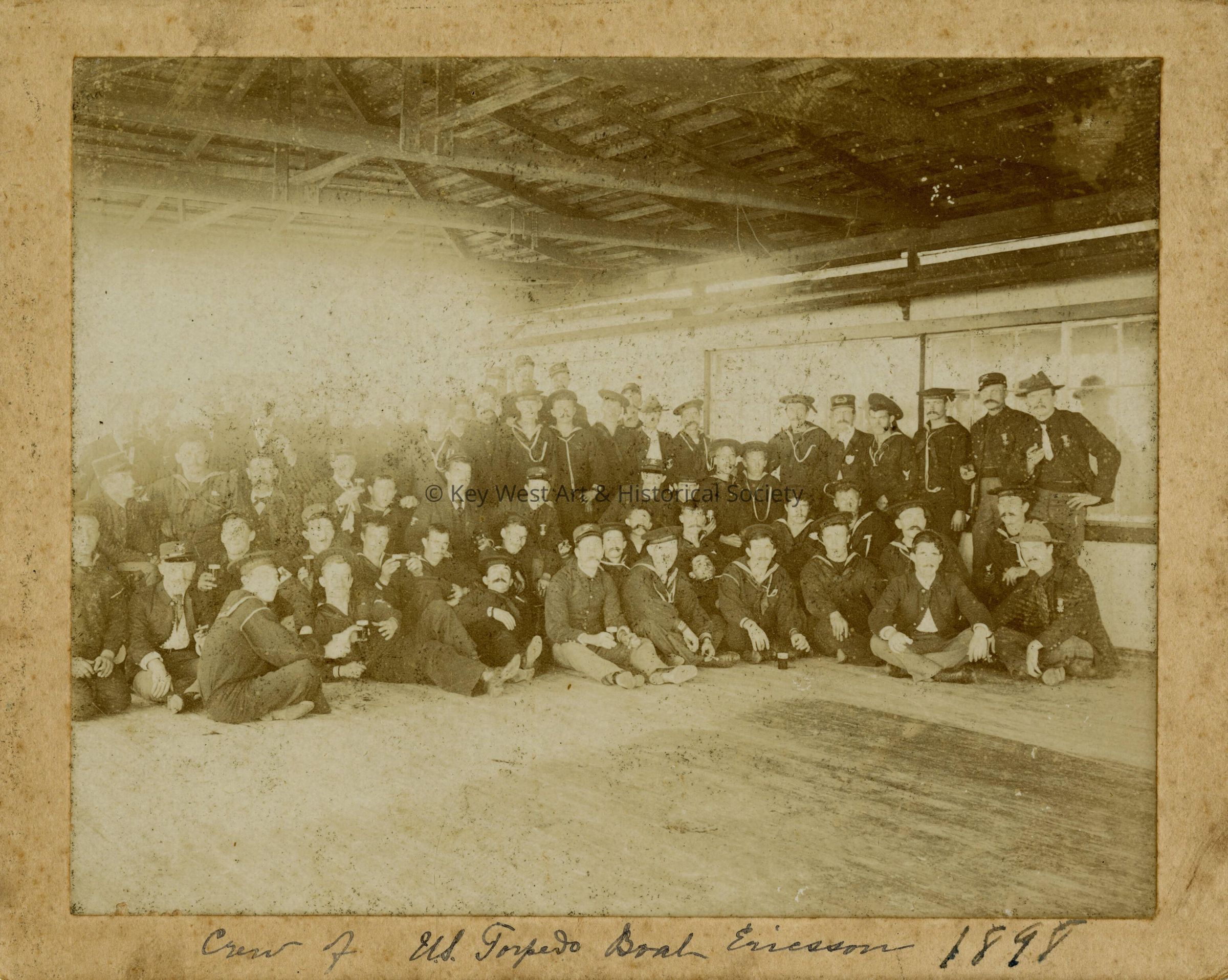 Crew members of the torpedo boat U.S.S. ERICSSON during the Spanish-American War. Prior to the war, the ERICSSON patrolled the Florida Keys, and performed blockade patrol during the conflict.Collection