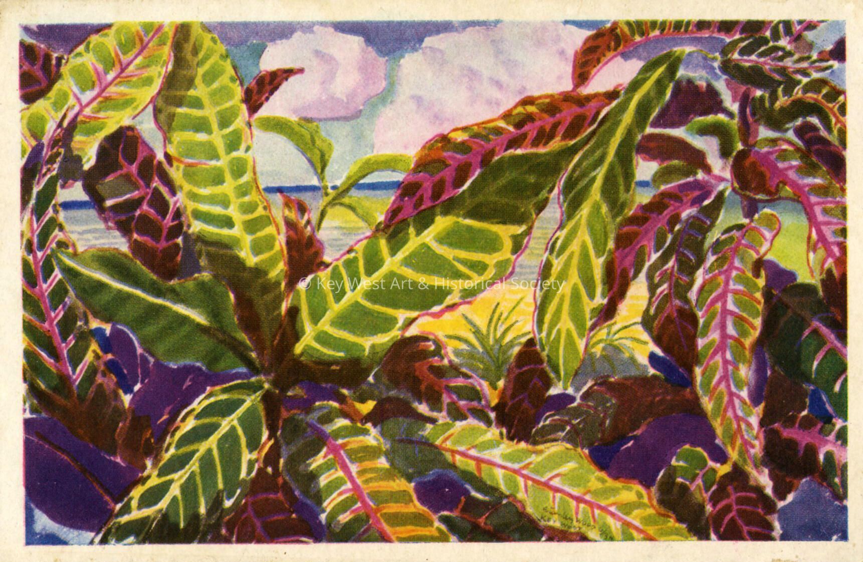 Postcard depicting crotons. Notation on verso, 'Crotons Key West, Florida. Original painting by Stanley Wood - in the collection of the Key West Administration.'Subject Place