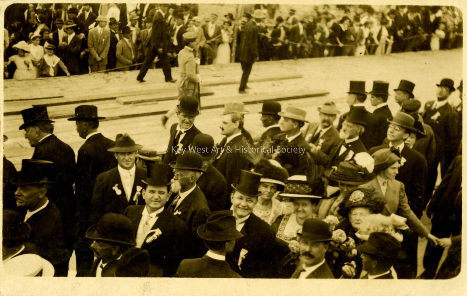 Postcard depicting a large crowd awaiting the arrival of the first Florida East Coast Railway train into Key West.Subject Person/Organization