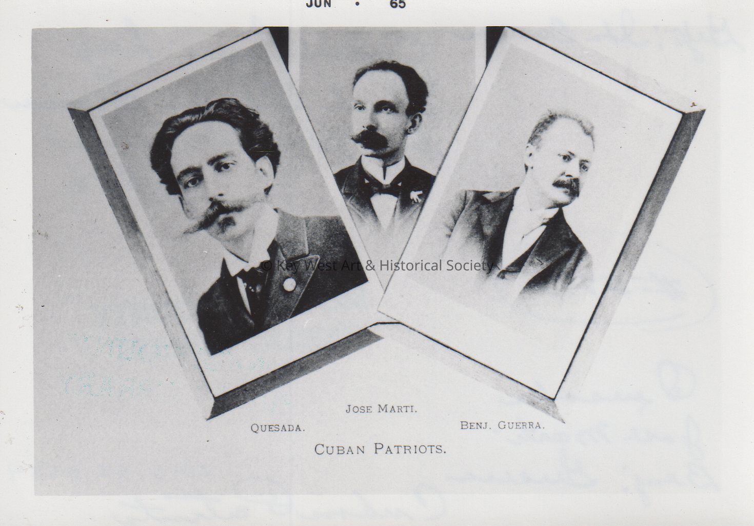 Black and white photograph of three Cuban patriots including Quesda, Jose Marti and Benjamin Guerra.