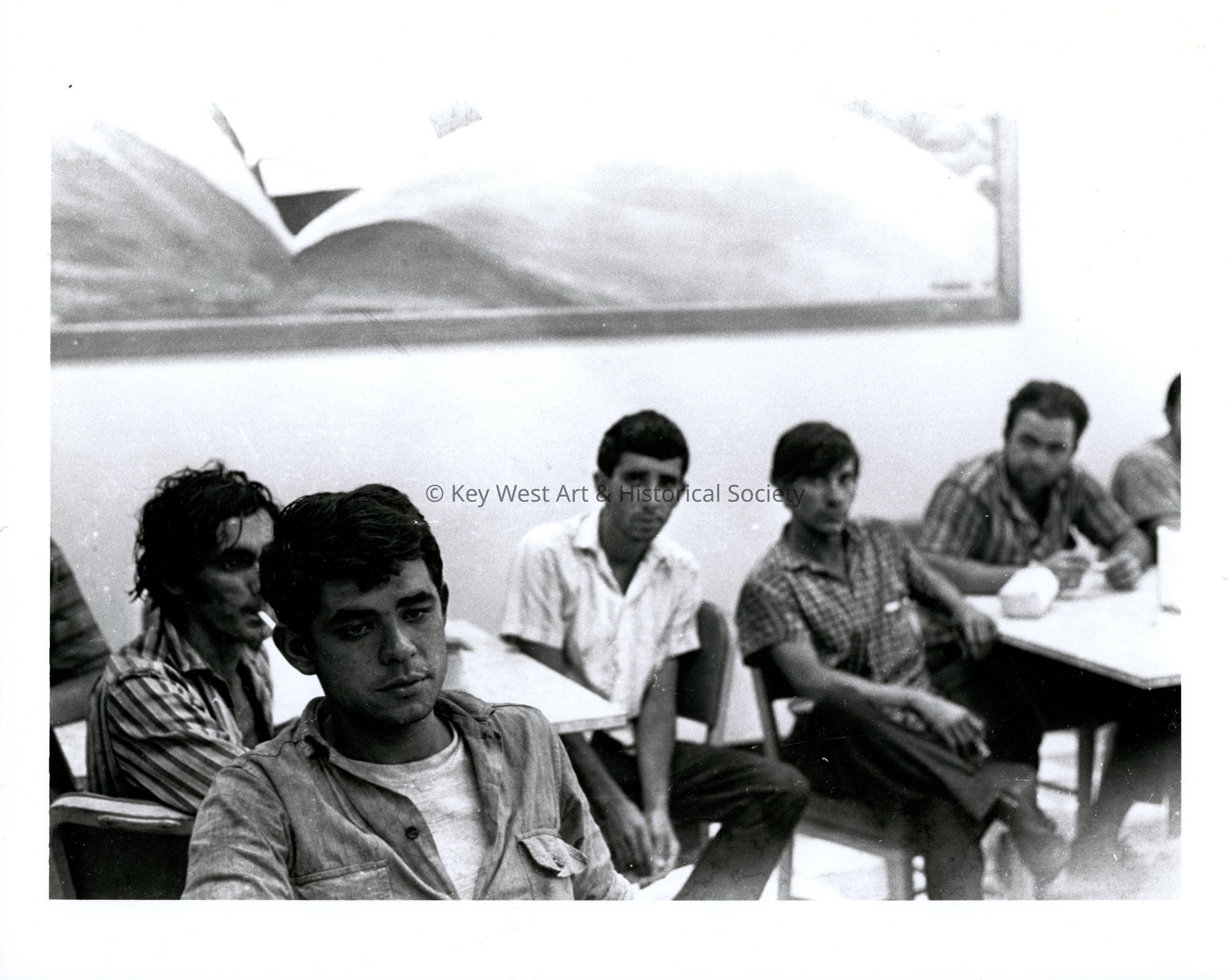 Black and white photograph of Cuban refugees taken during the Mariel Boatlift.