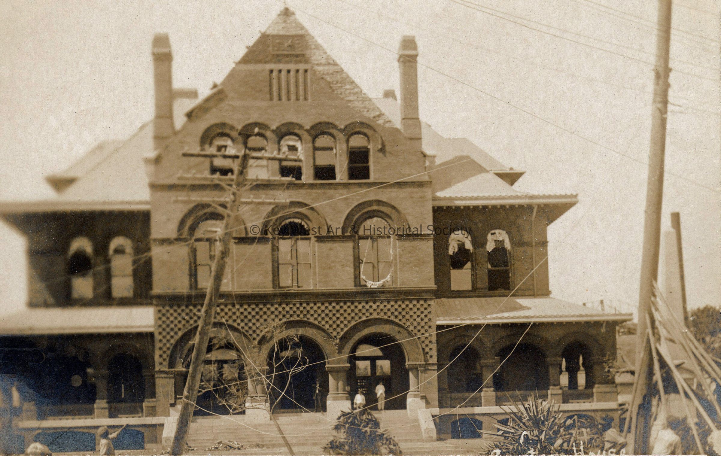 Postcard depicting storm damage to the Custom House, Key West, Florida.
