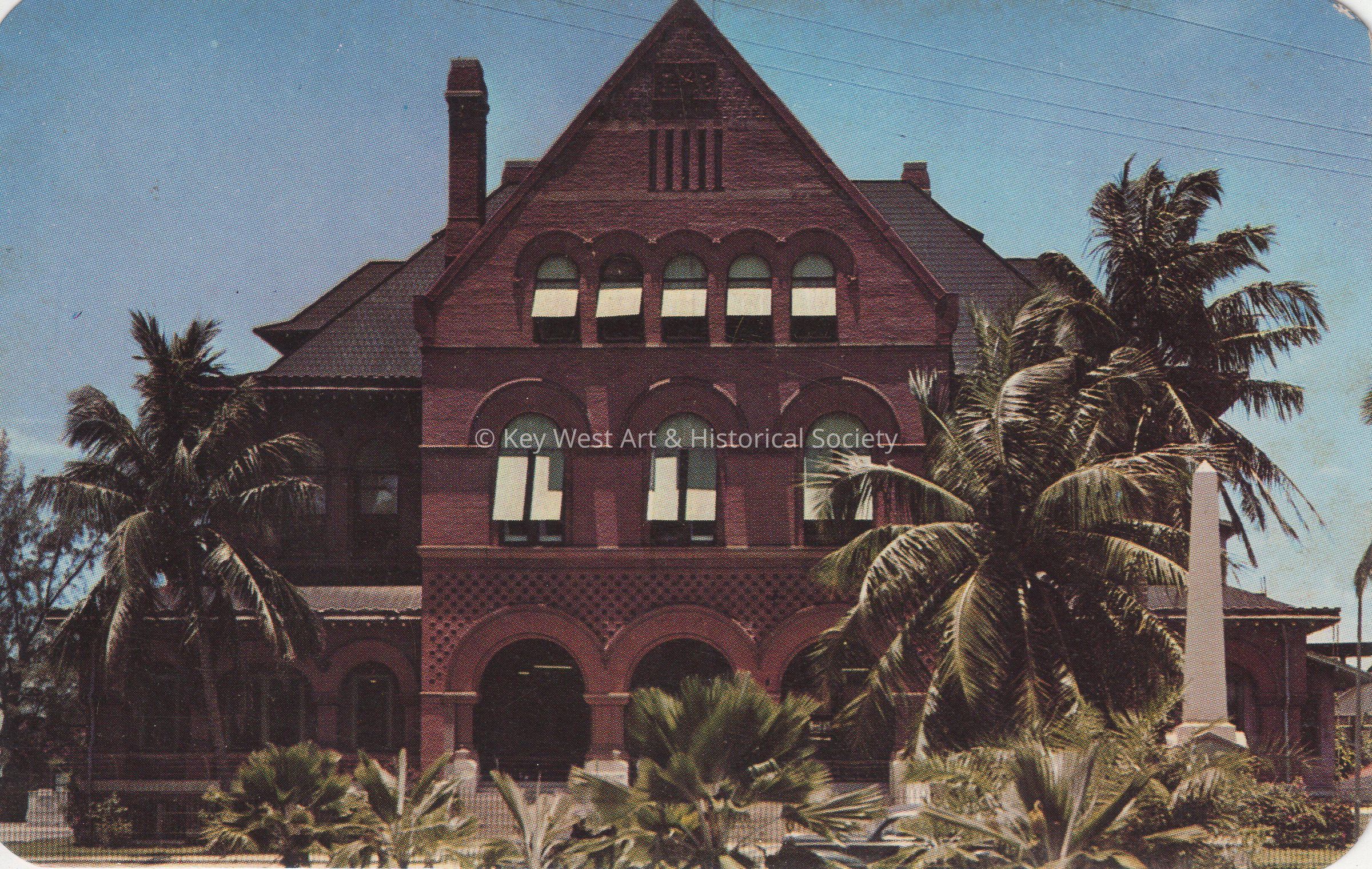 Postcard of the Custom House. The description on the verso reads, ‘Old Customs Building, Naval Operating Base, Key West, Florida.’Subject Place