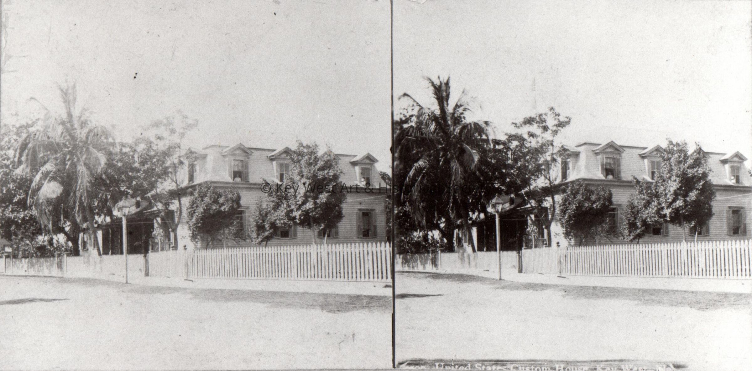 Black and white stereoview of the original United States Custom House at Key West, pre 1885.