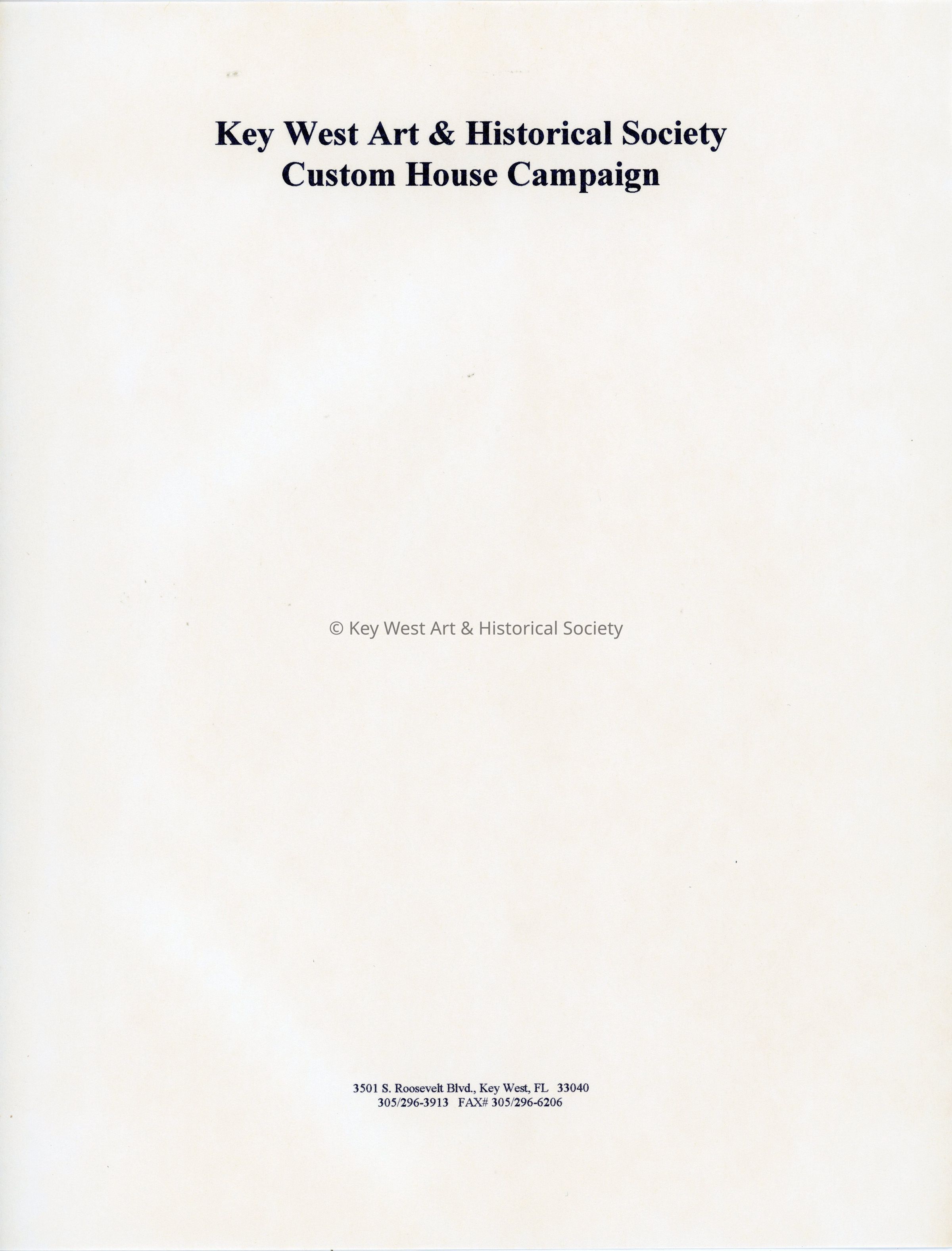 Document with 'Key West Art & Historical Society Custom House Campaign' letterhead in black text.
