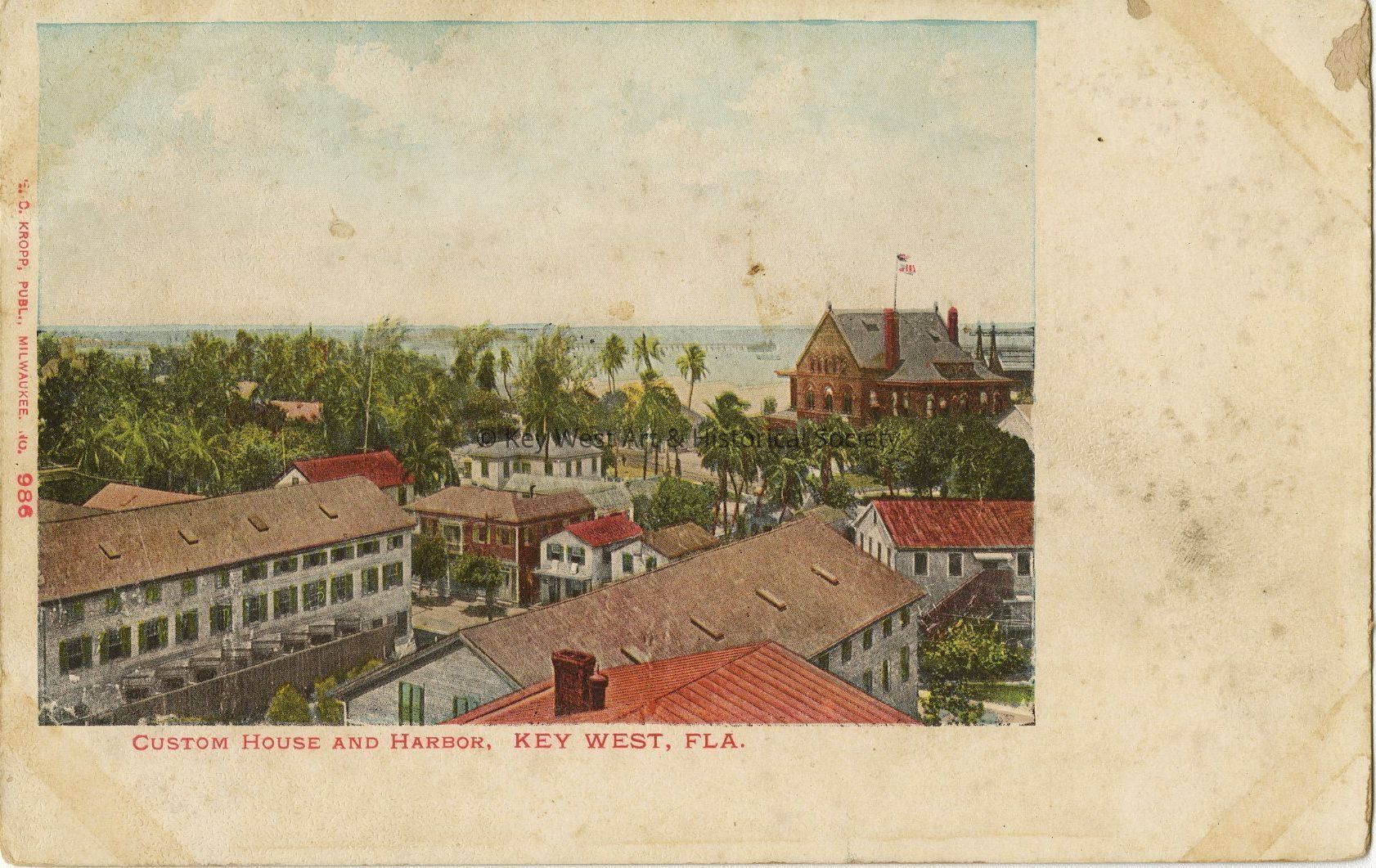 Postcard depicting the Custom House and harbor in Key West, Florida.Collection
