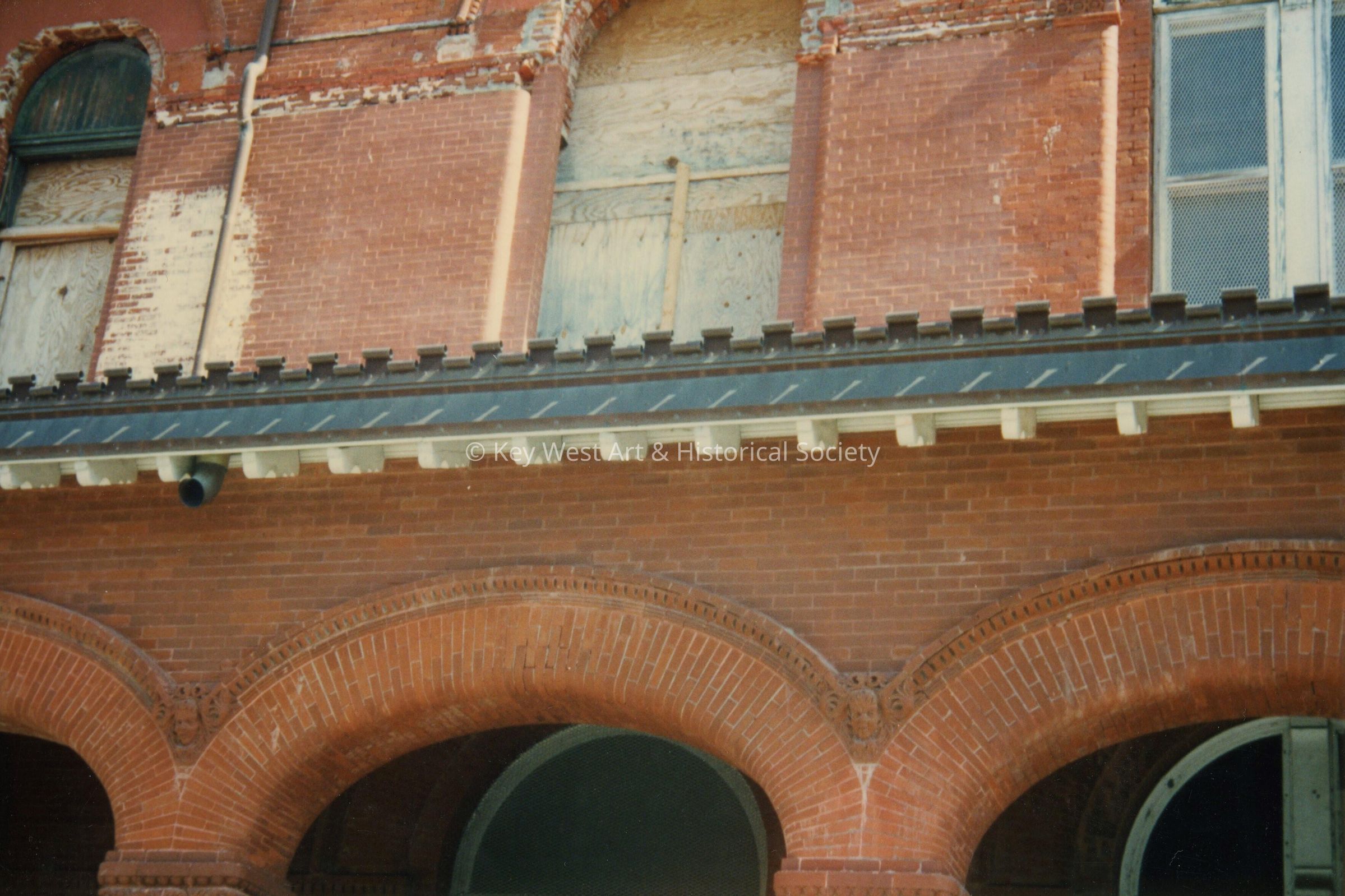 Color photograph taken during the restoration of the Key West Custom House and Post Office of the windows on the second floor.