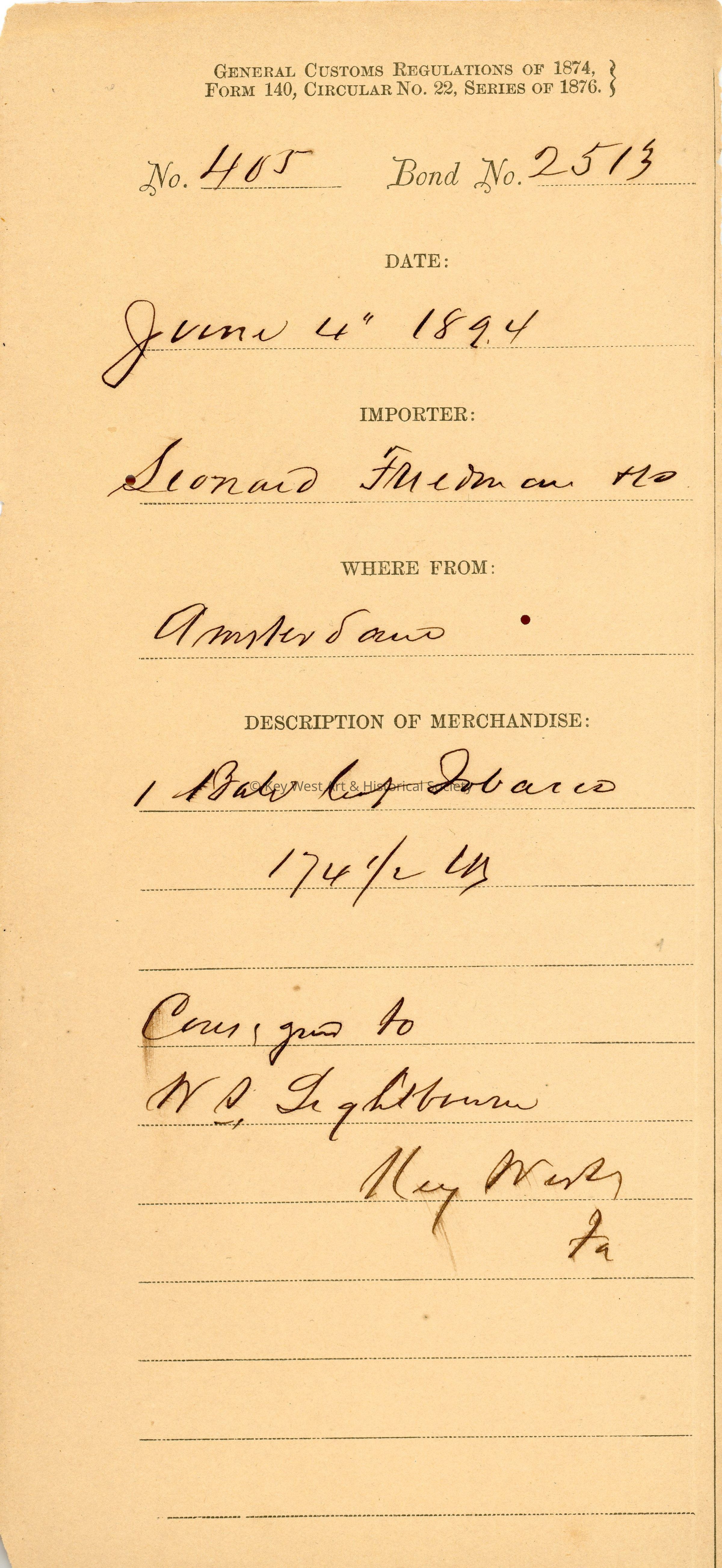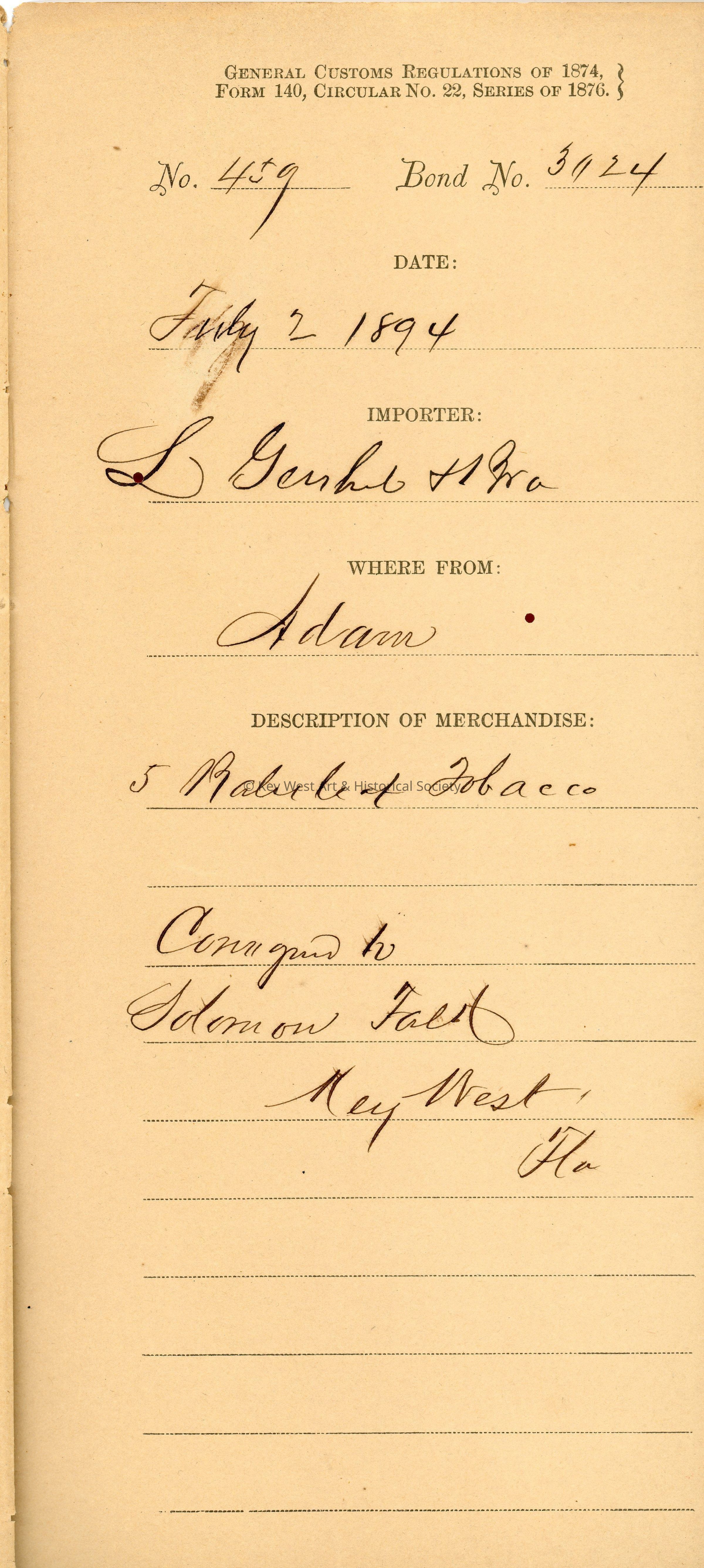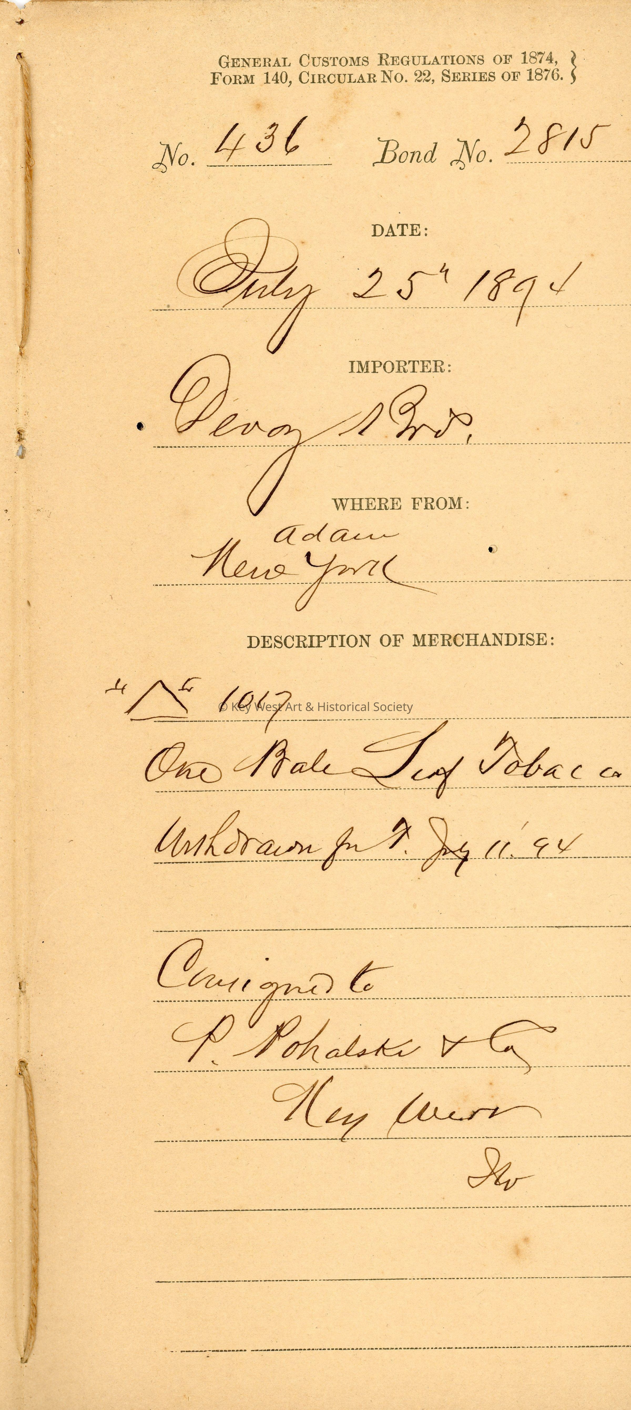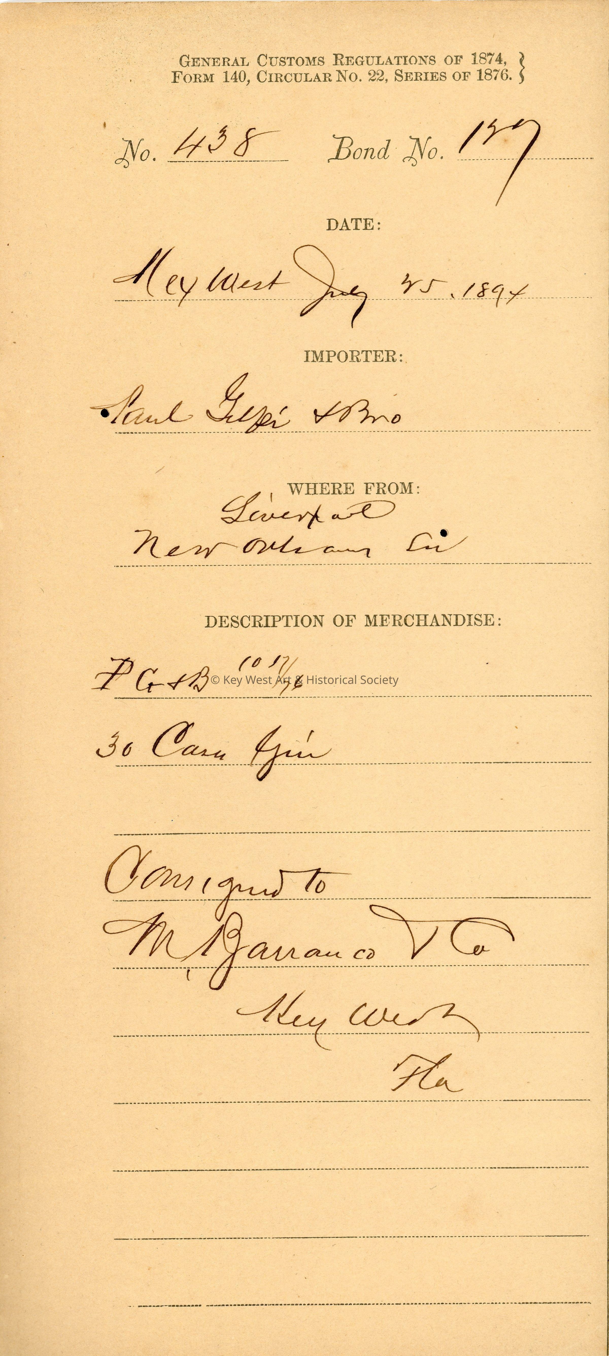 Office of the Collector of Customs, Key West, FloridaDate(s) of Creation