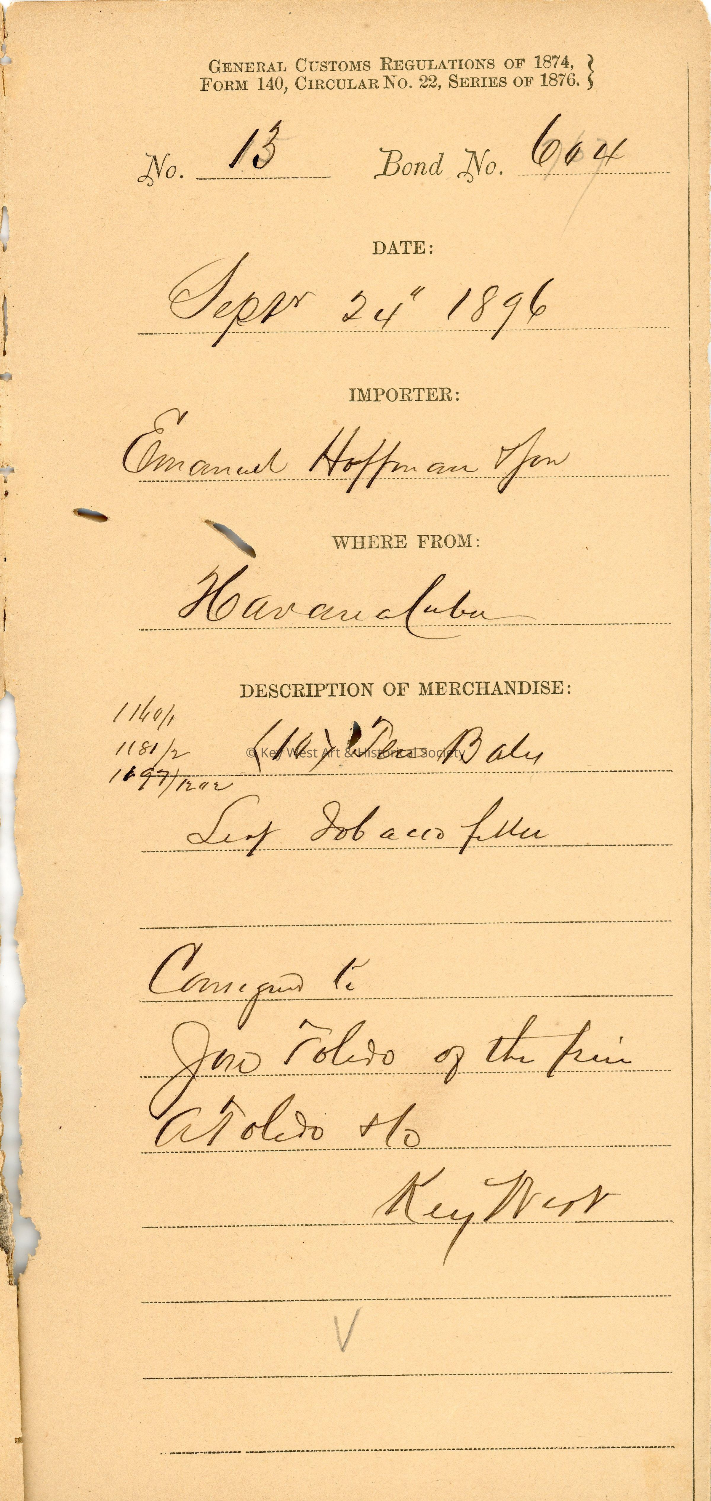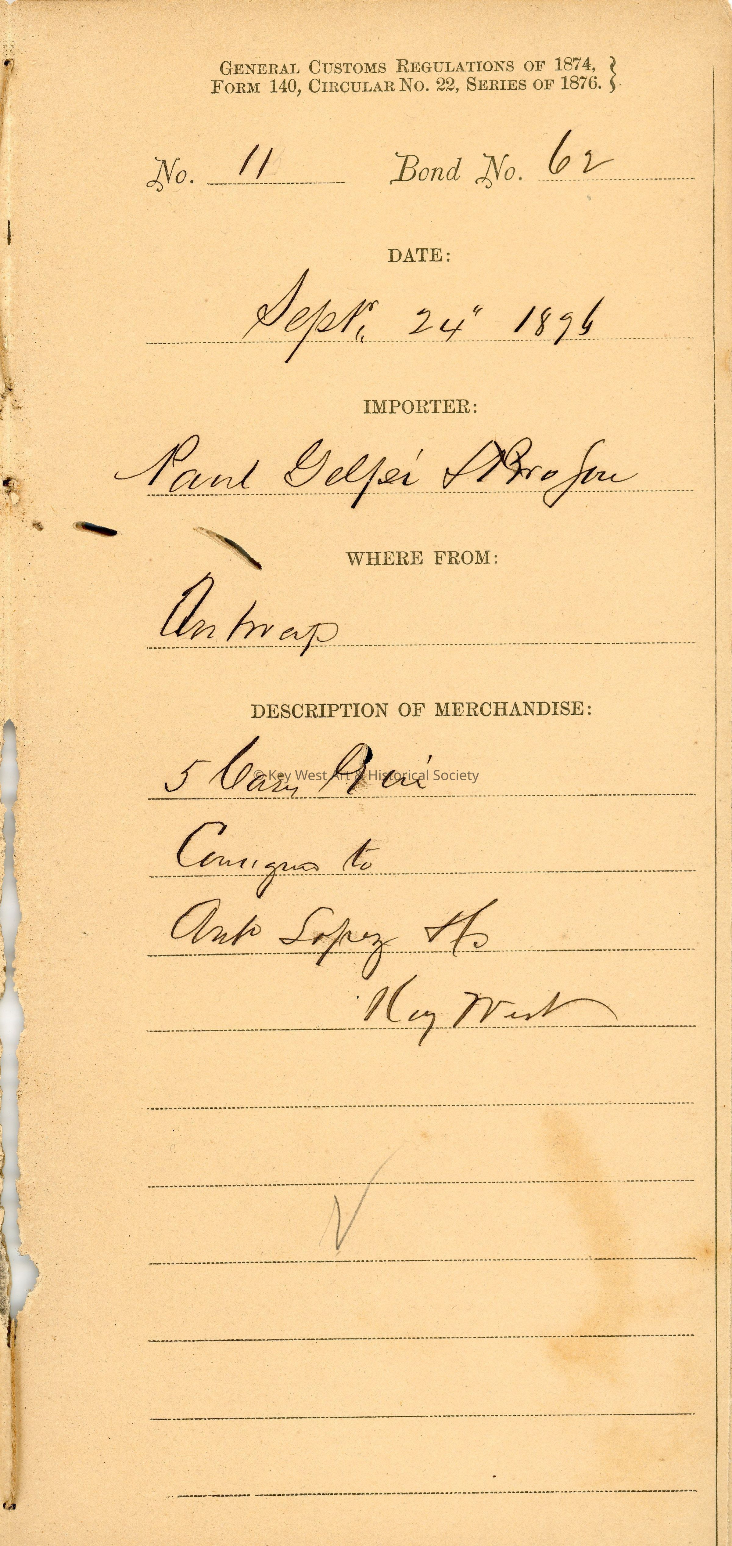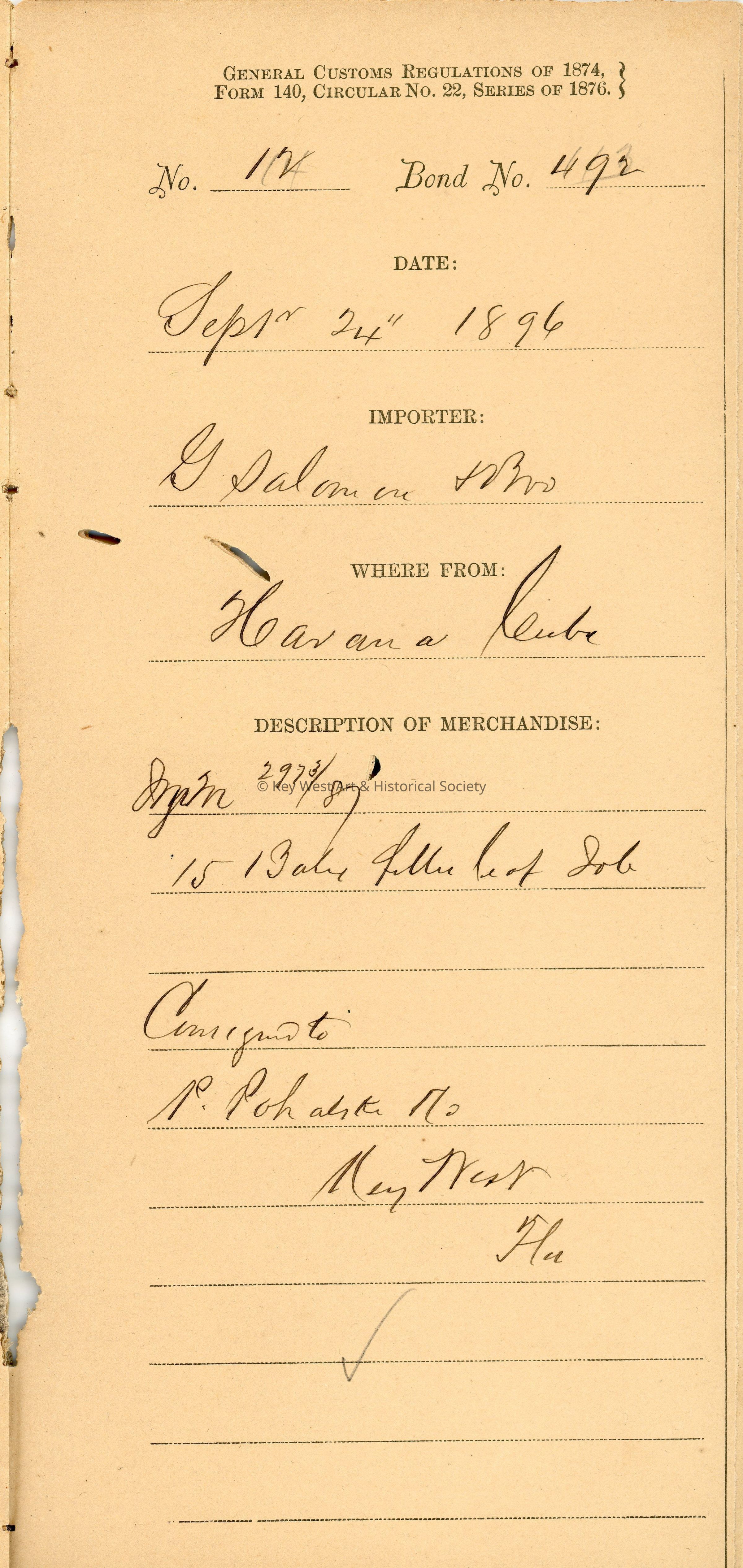 Office of the Collector of Customs, Key West, FloridaDate(s) of Creation
