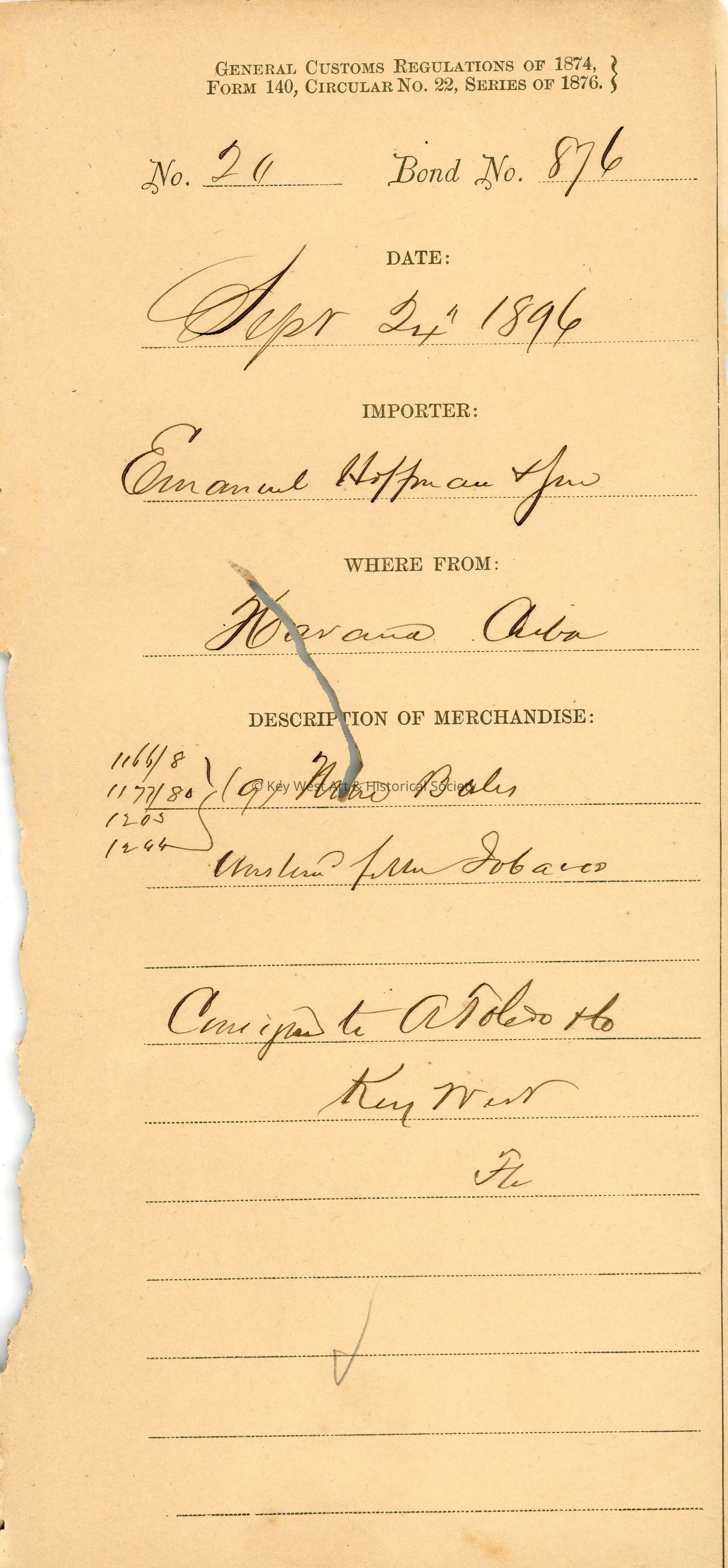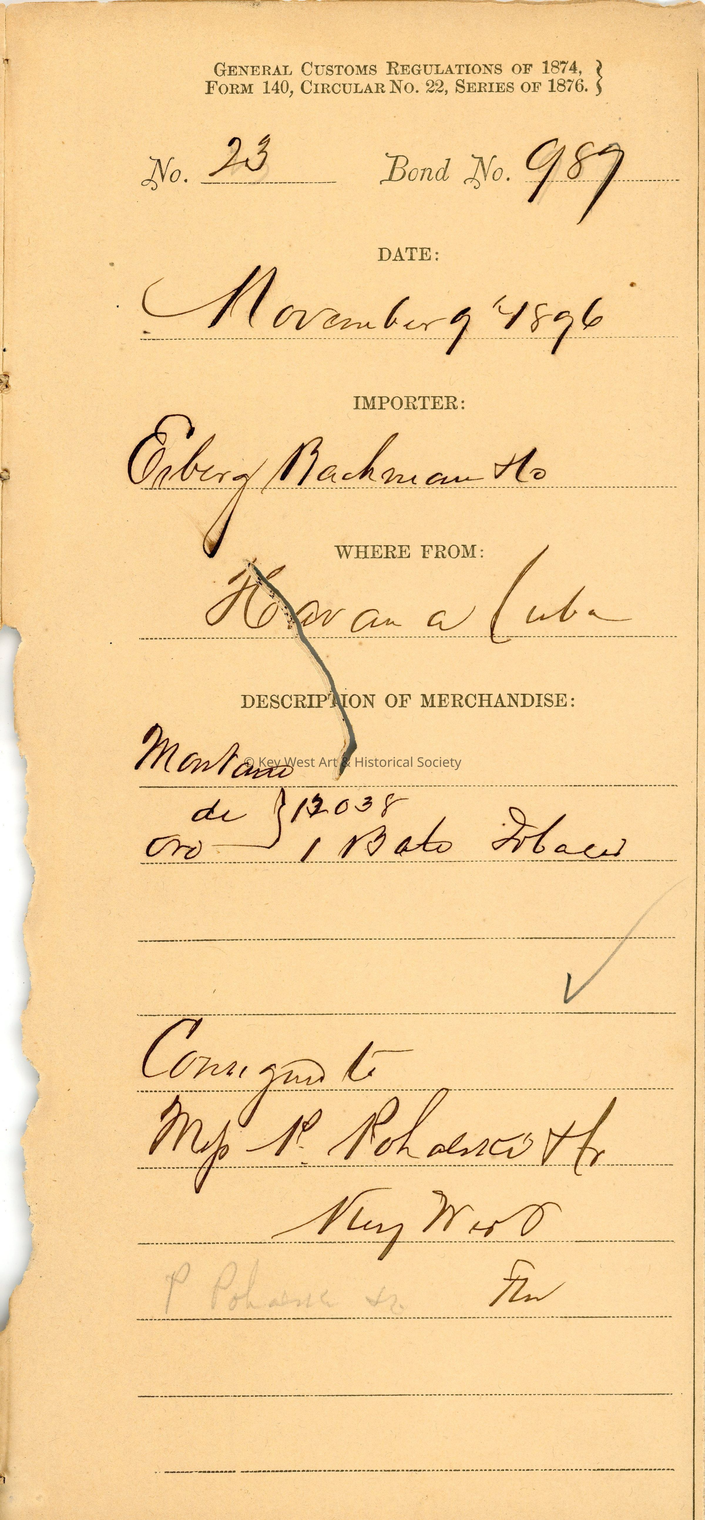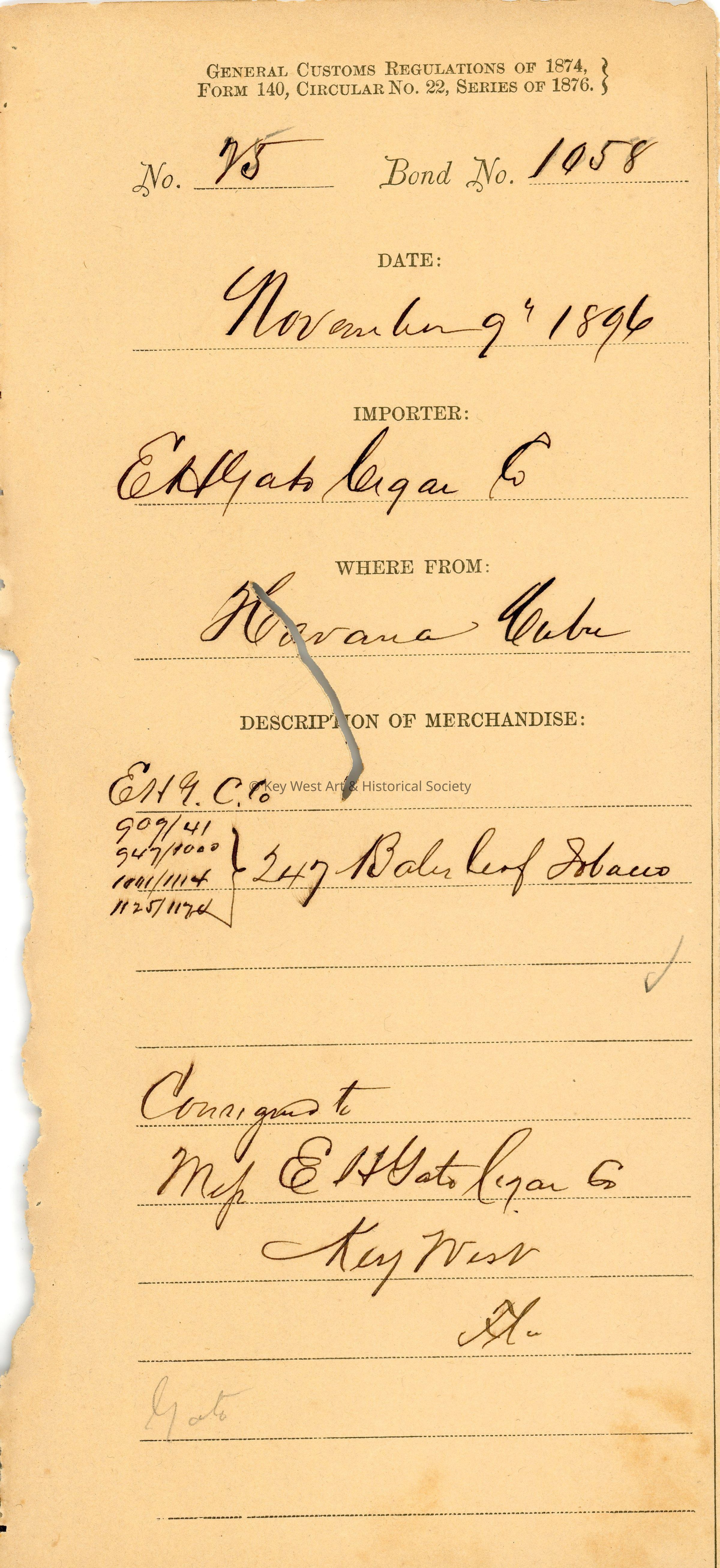 Office of the Collector of Customs, Key West, FloridaDate(s) of Creation