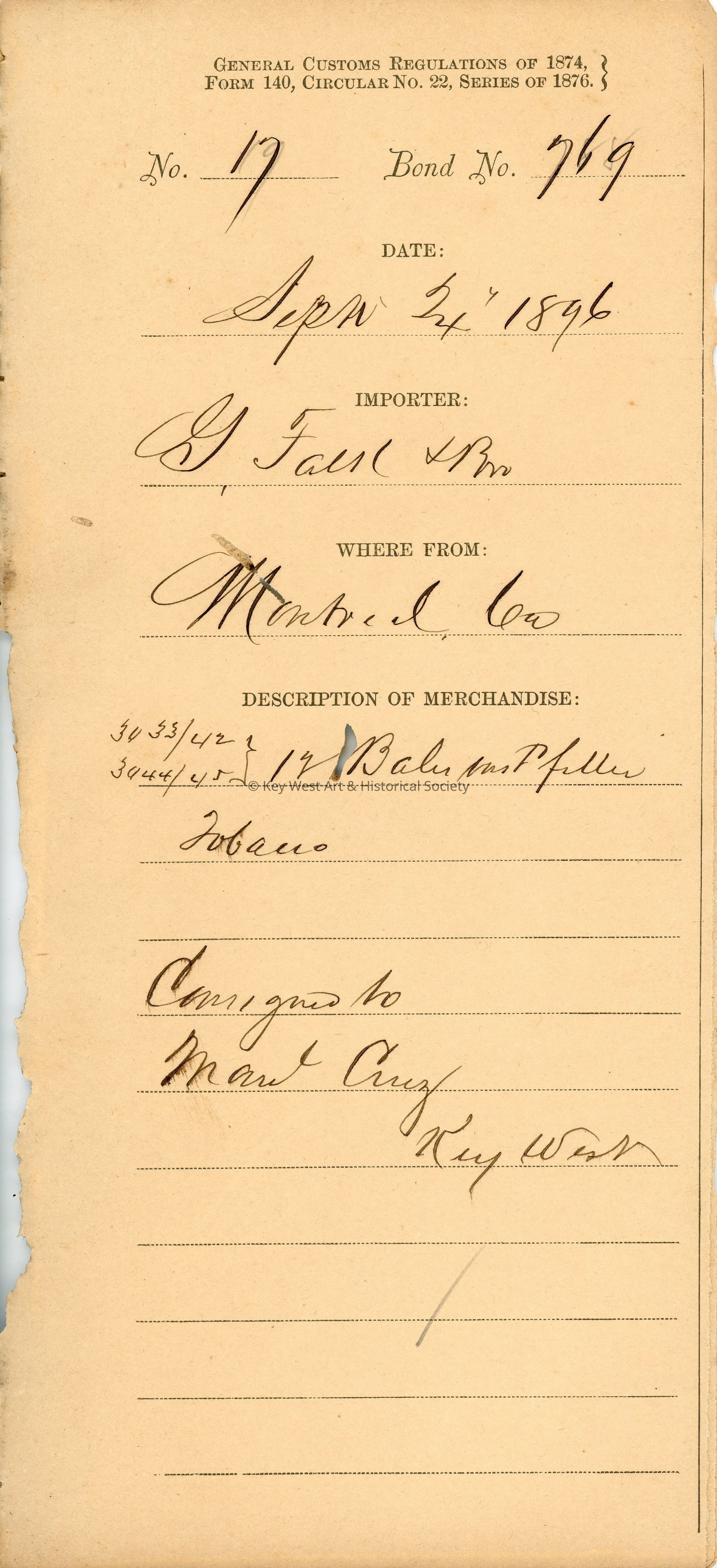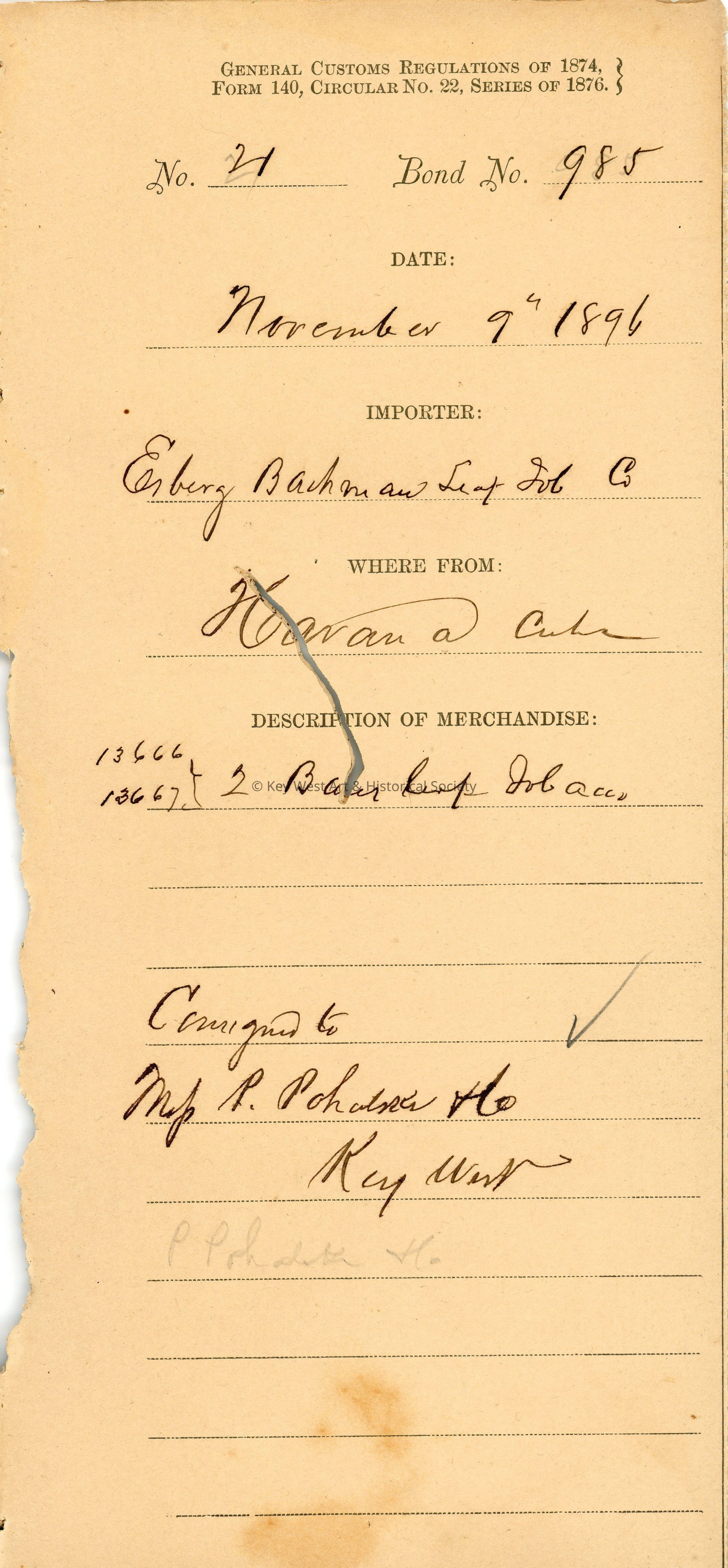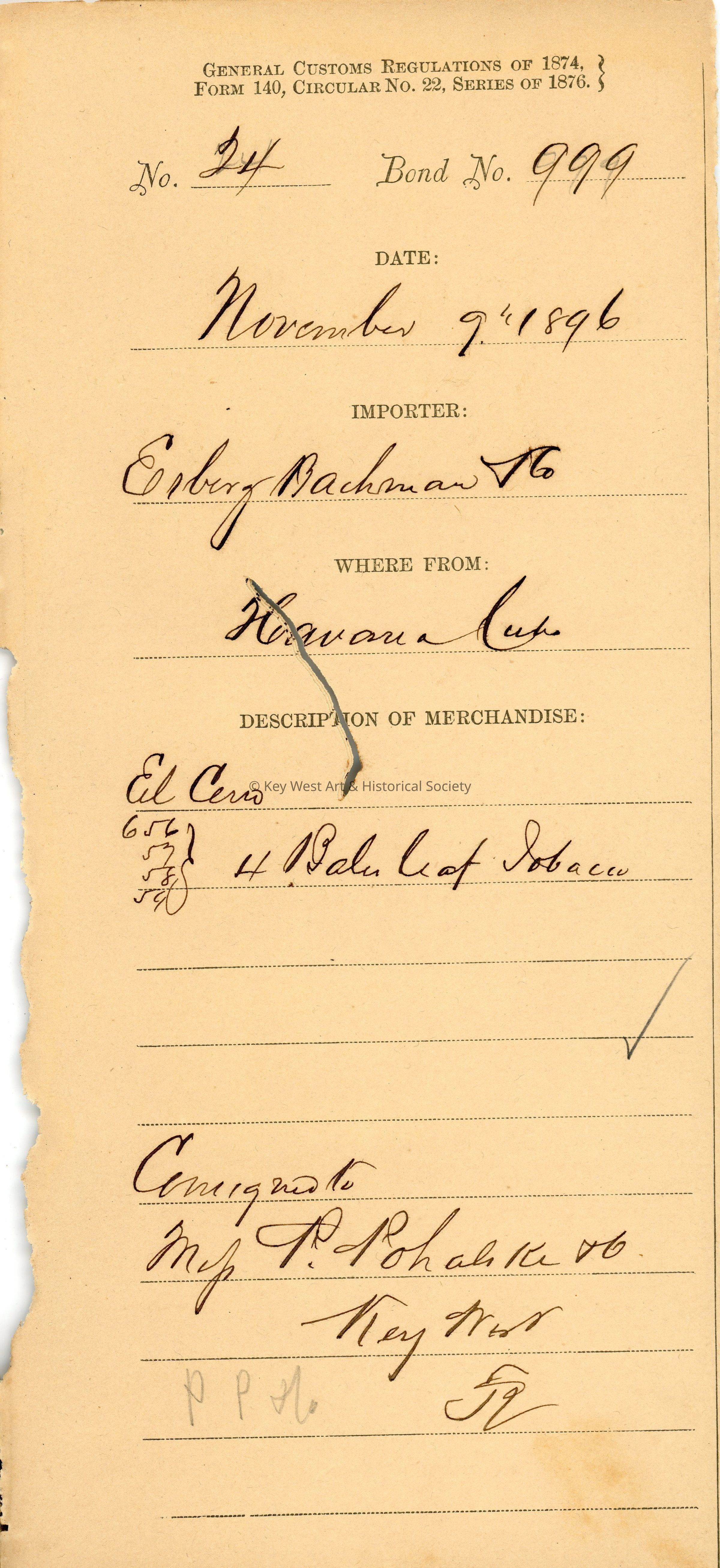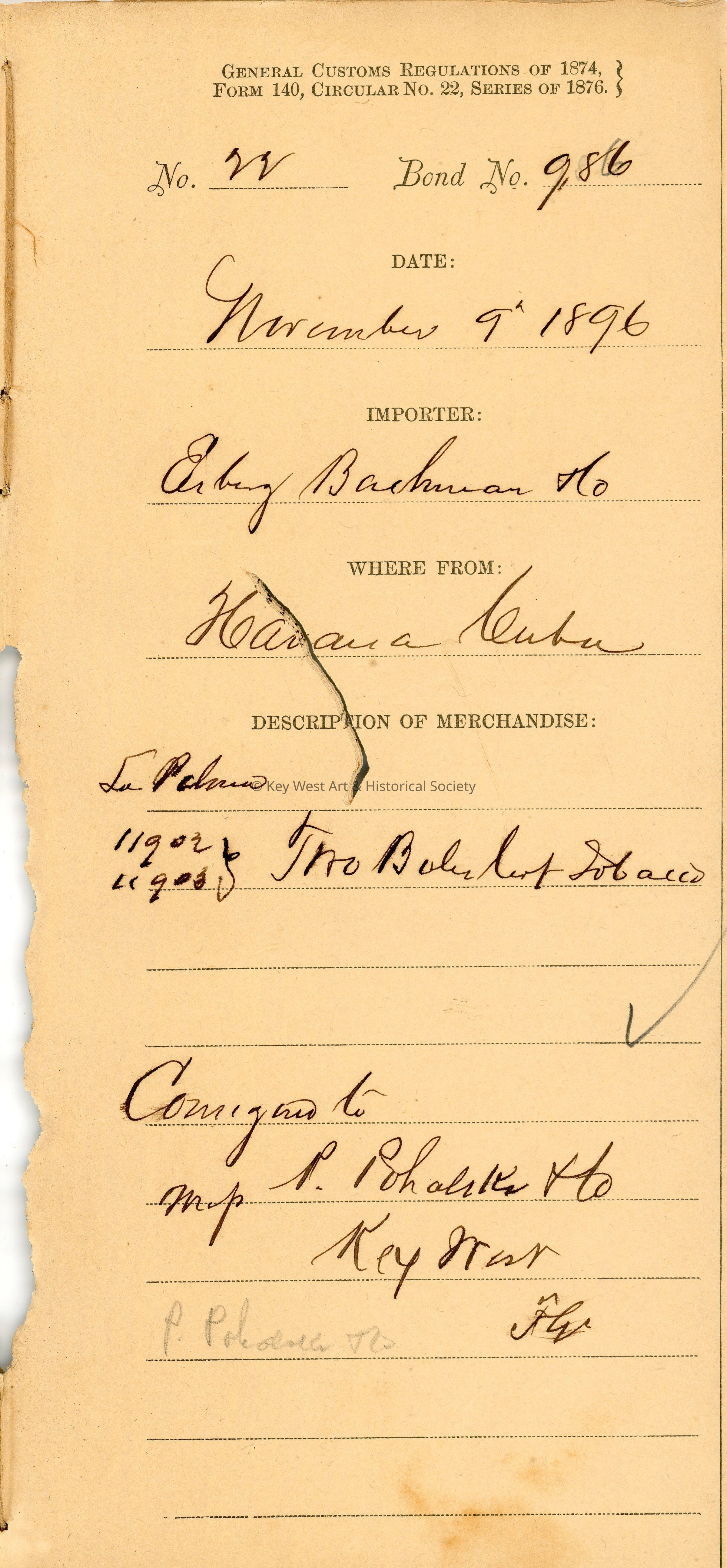 Office of the Collector of Customs, Key West, FloridaDate(s) of Creation